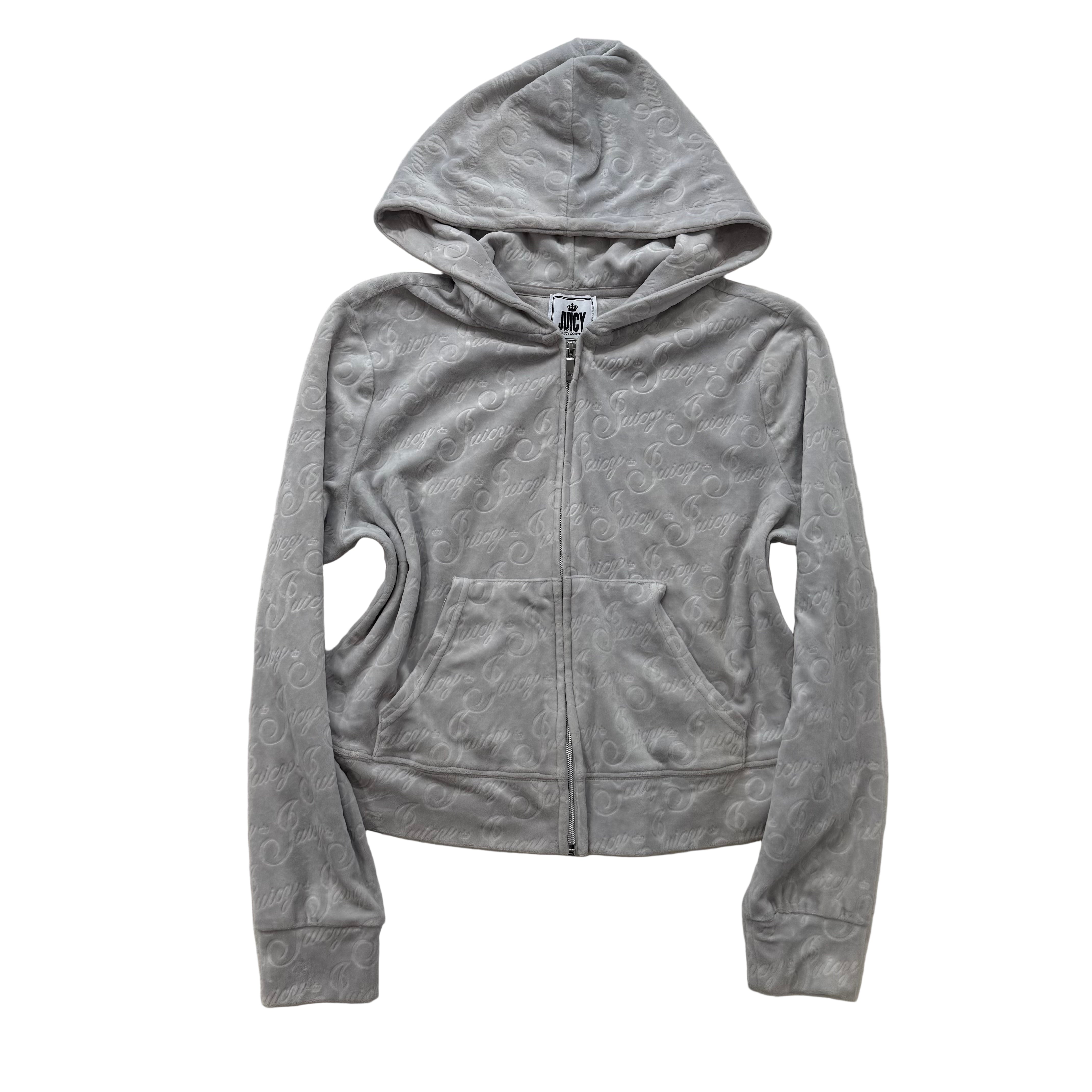 Vintage Juicy Couture Women's Gray Velour Full Zip Hoodie Juicy Embossed Size L