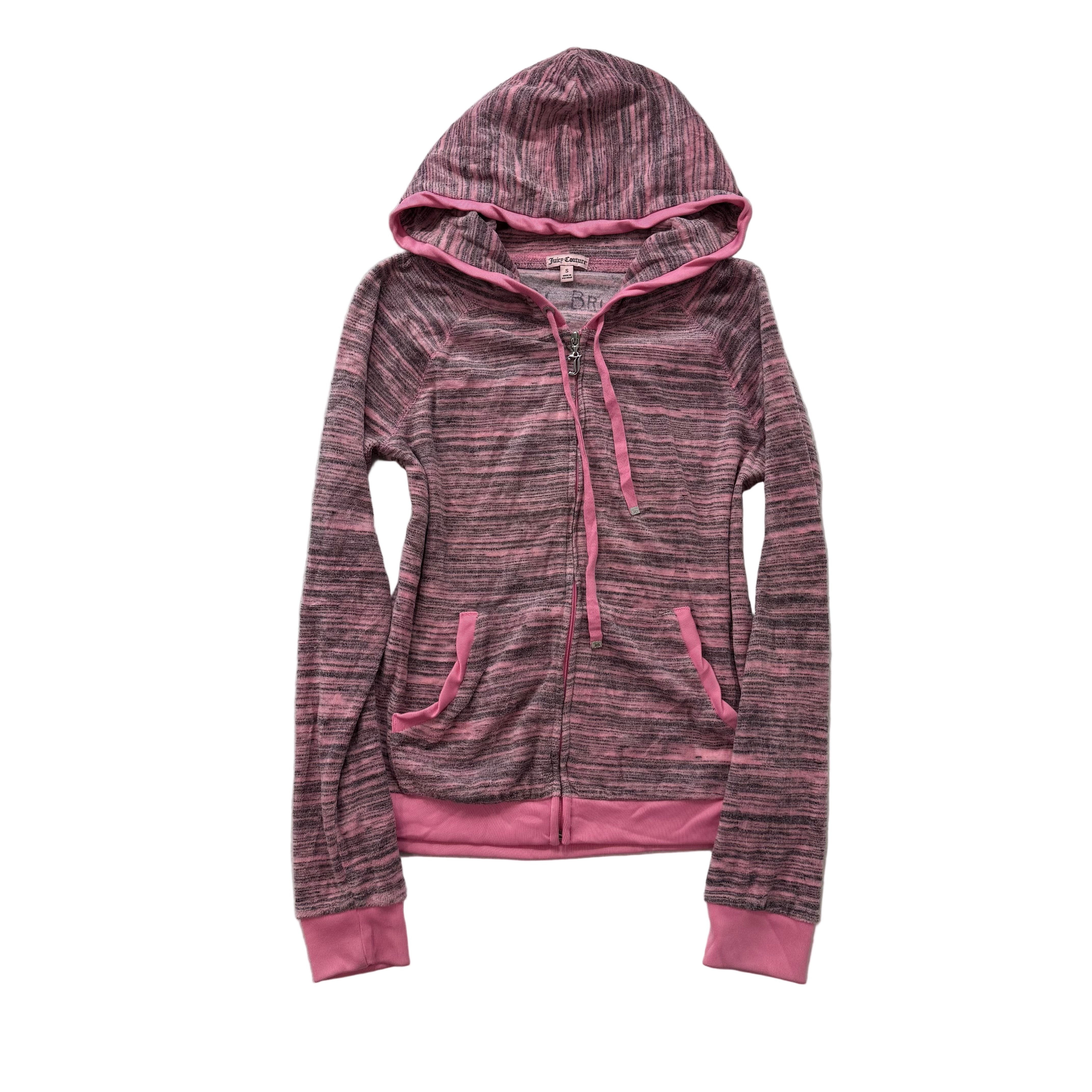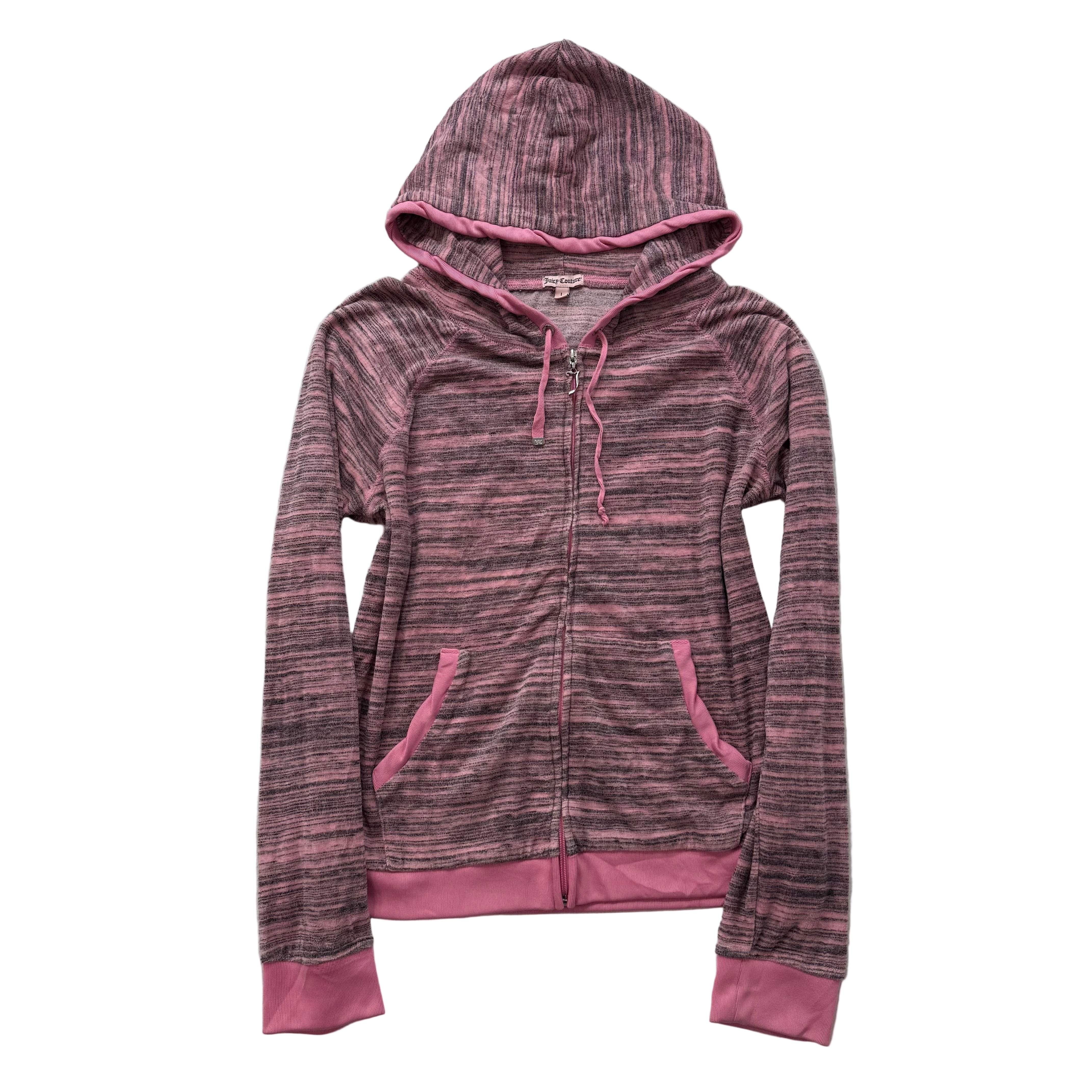 Vintage Juicy Couture Women's Heathered Pink Gray Velour Full Zip Hoodie Size S
