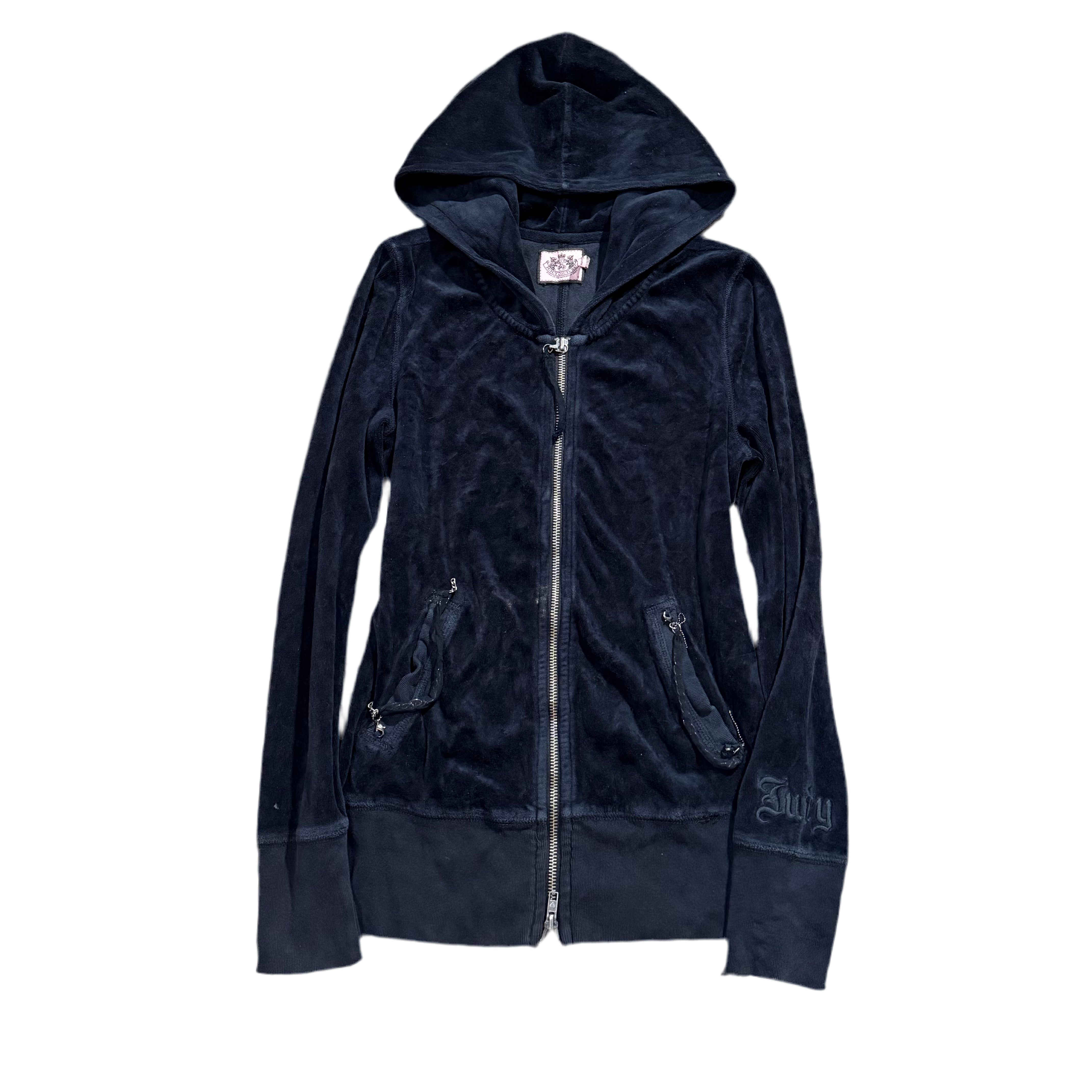 Vintage Juicy Couture Black Velour Chain Pocket Zip Hoodie Size S