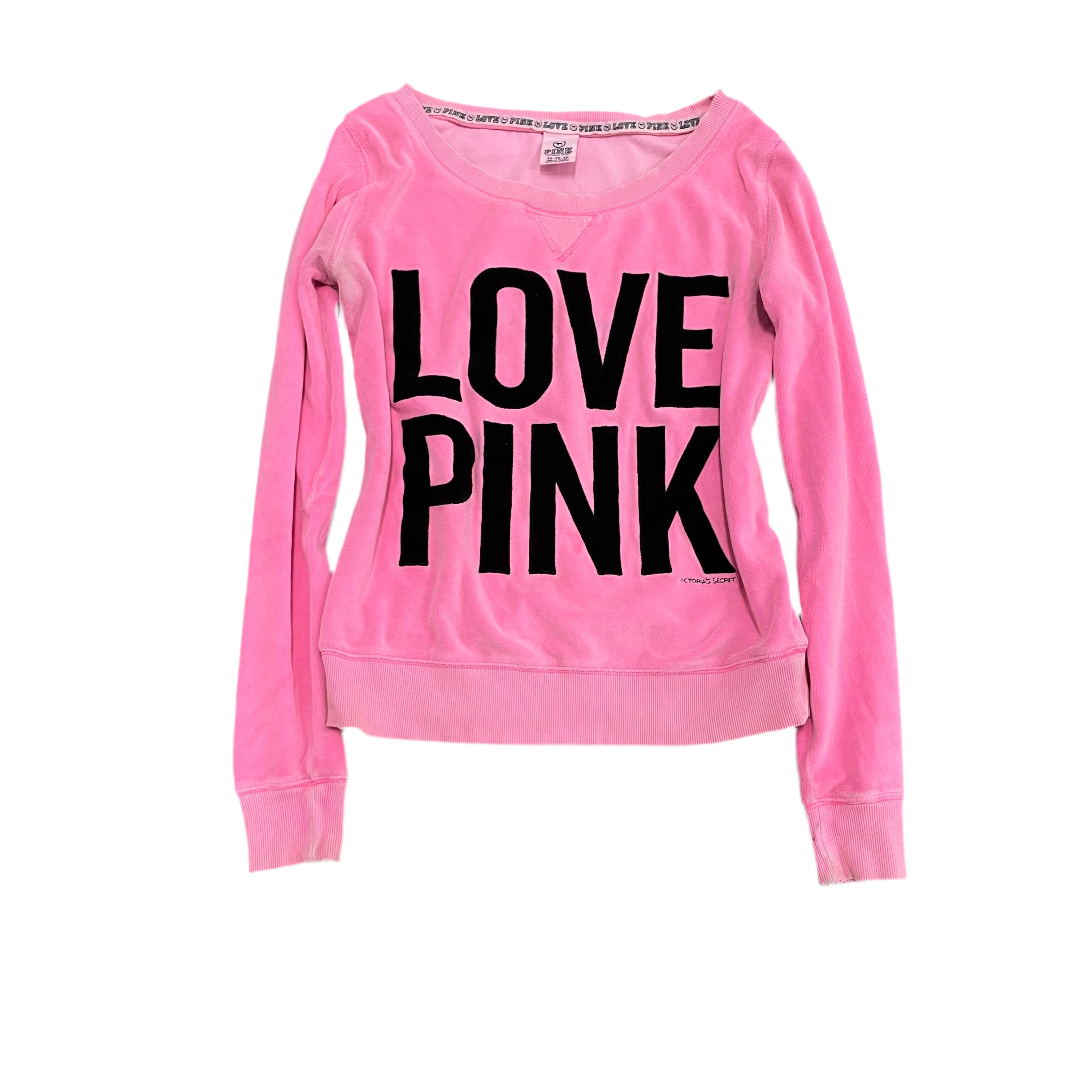 Vintage Victoria’s Secret PINK Hot Pink Velour “LOVE PINK” Crewneck Sweatshirt Size XS