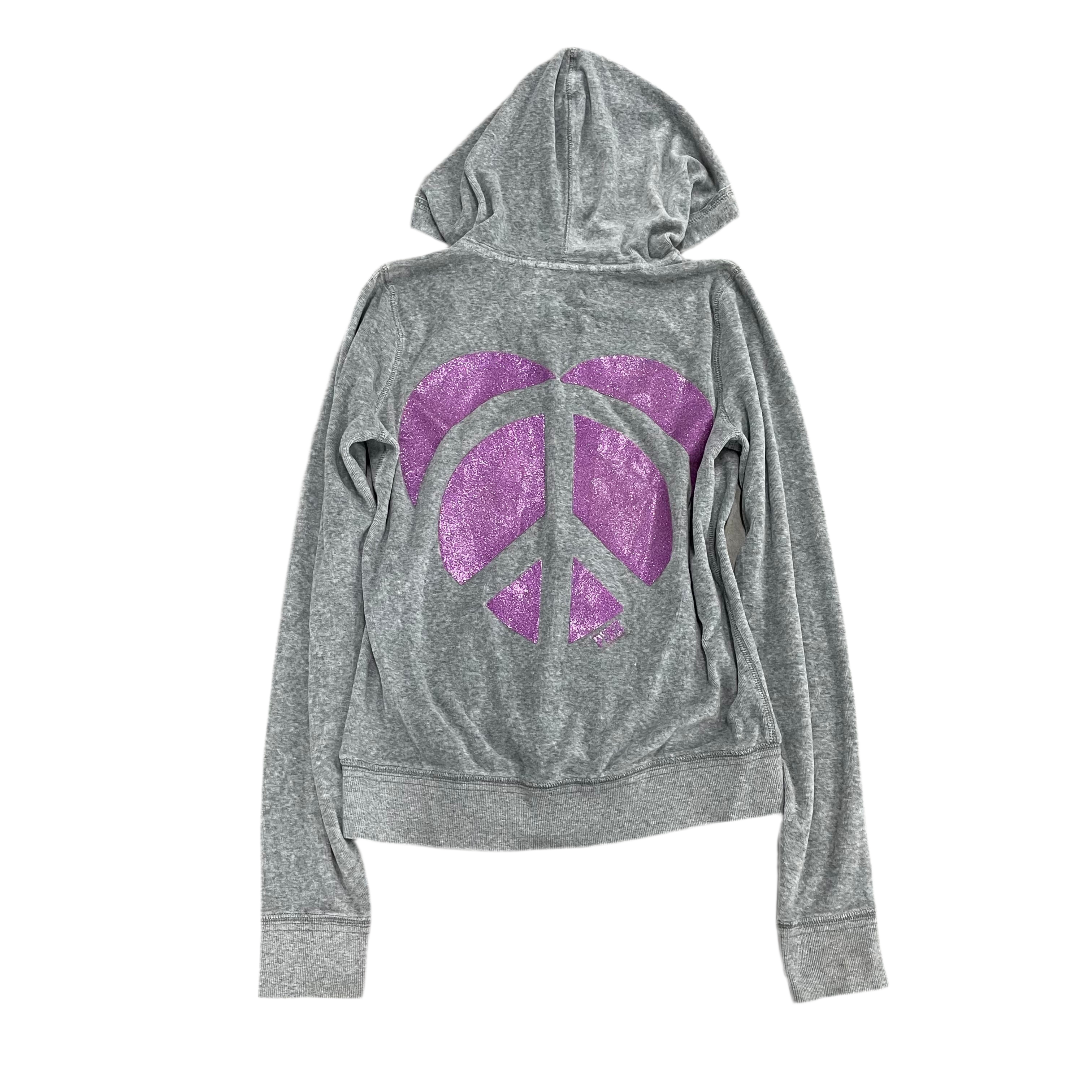 Vintage Victoria’s Secret PINK Gray Velour Hoodie with Pink Glitter Peace Graphic Size M