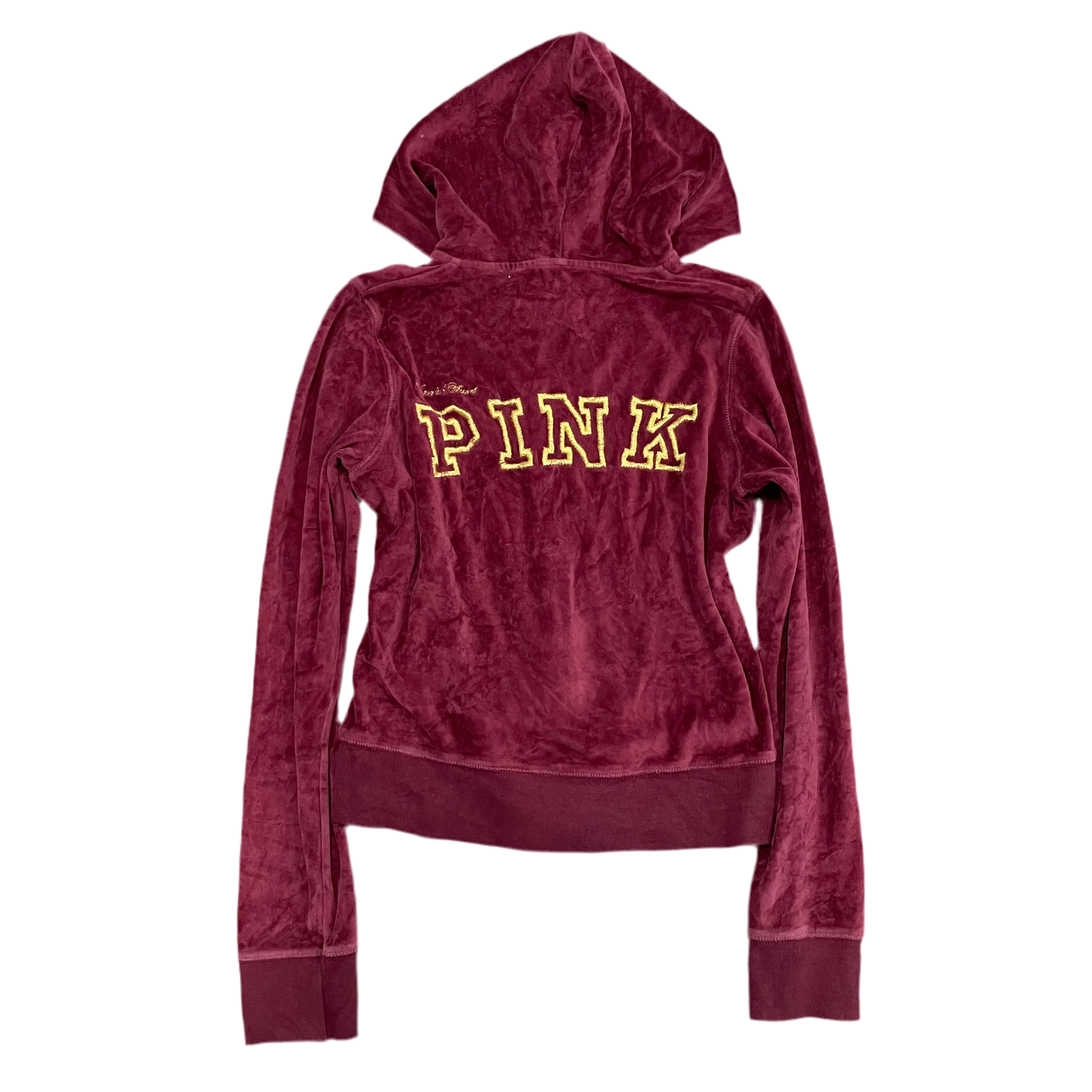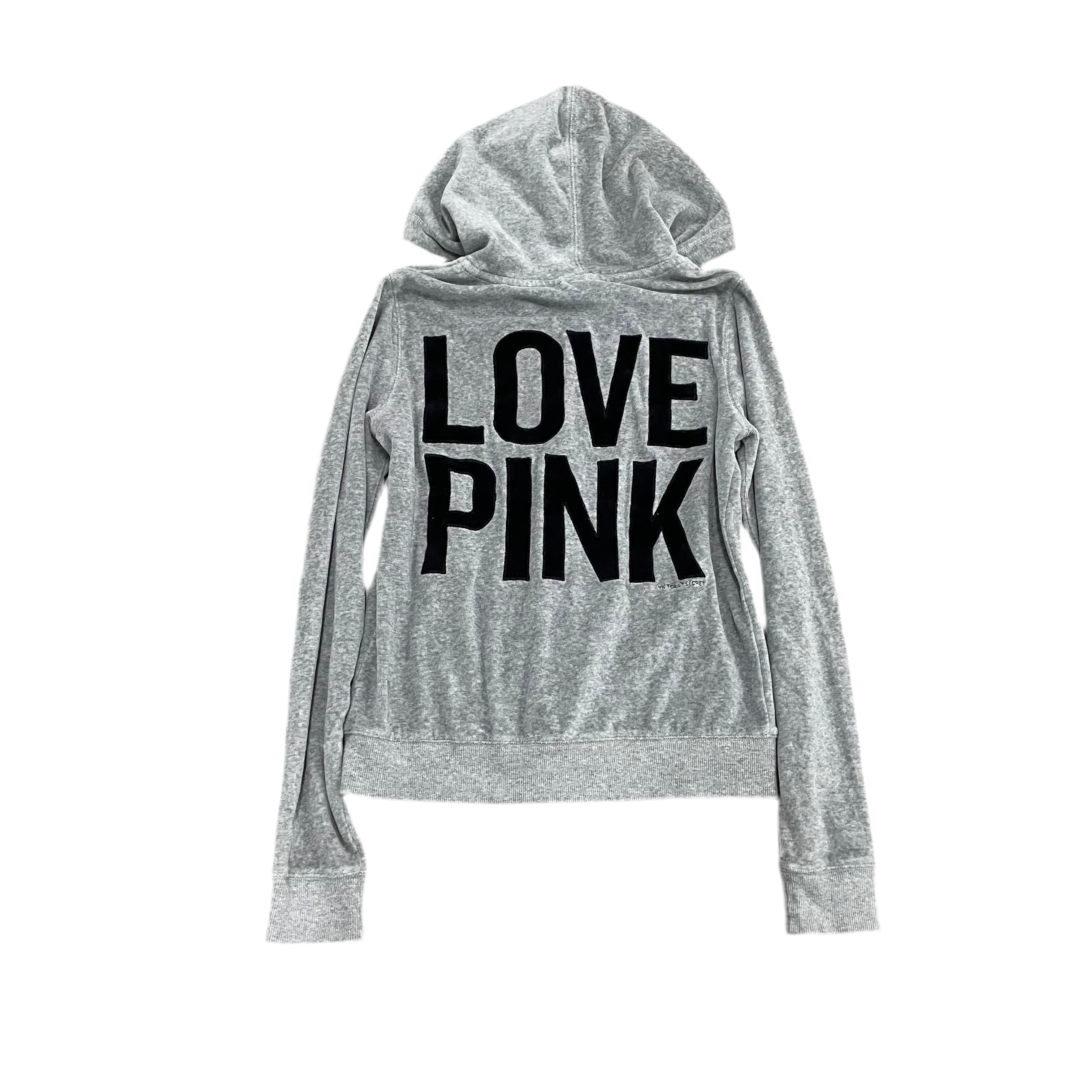 Vintage Victoria’s Secret PINK Gray Velour “LOVE PINK” Back Graphic Hoodie Size S