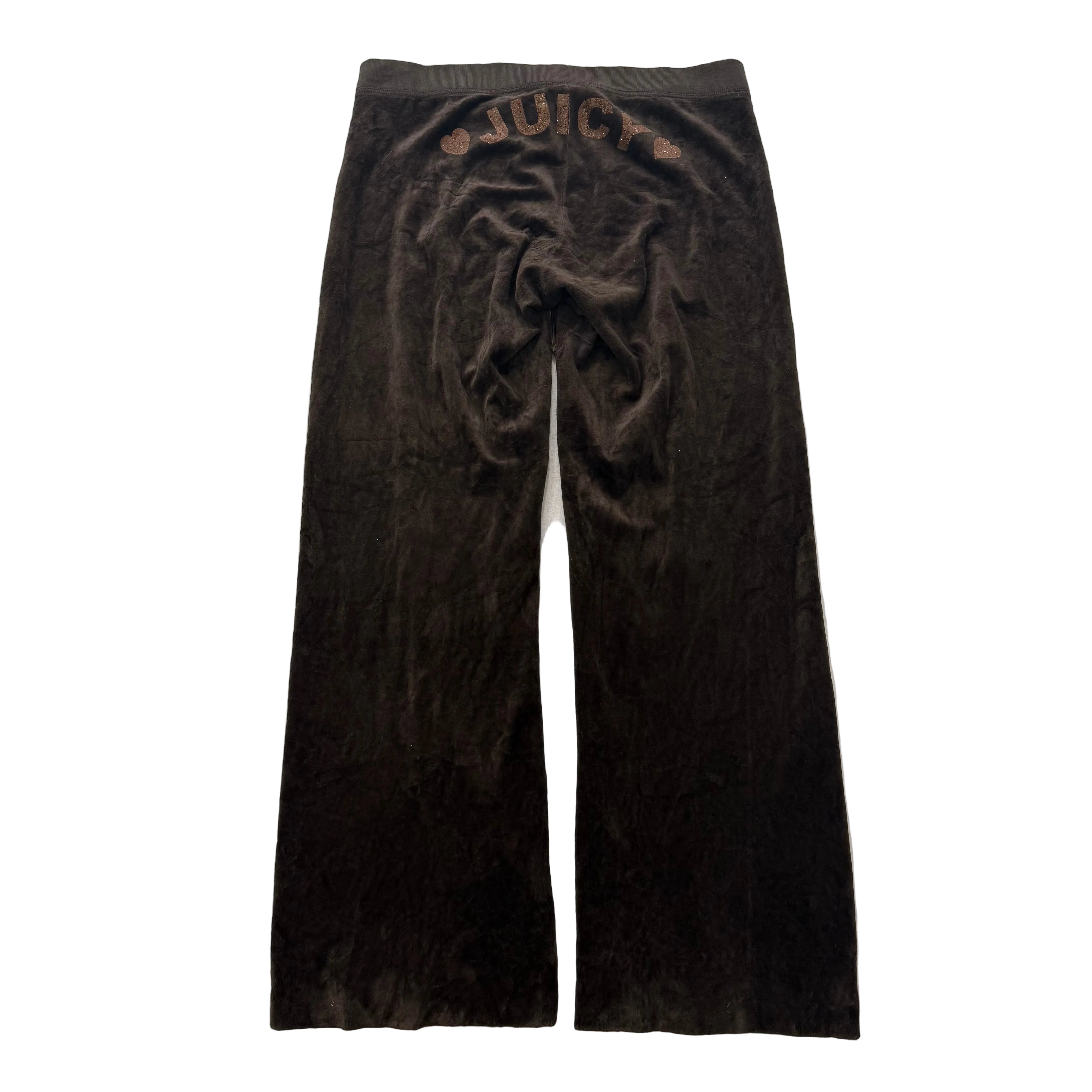 Iconic Y2K Juicy Couture 2003 track pants in a black colorway, made from velour for that signature early-2000s lounge aesthetic. Designed with a drawstring waist and finished with a zipper flare detail that adds a classic Juicy statement to the silhouette.