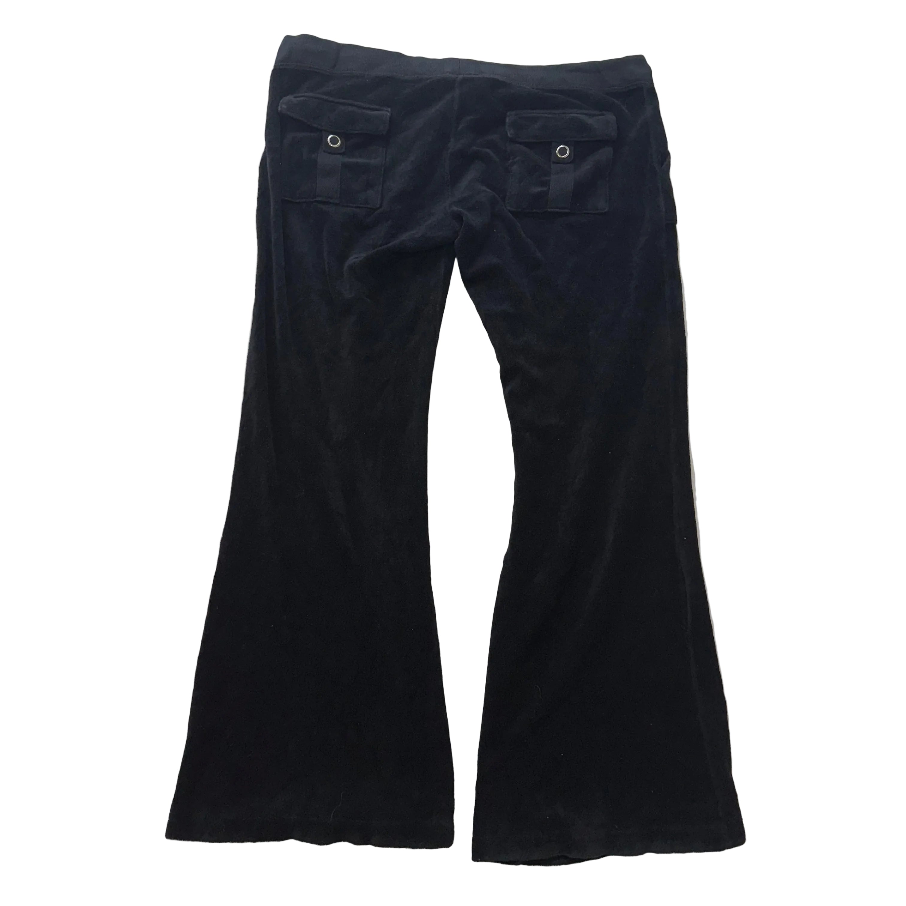 Vintage Juicy Couture 2003 Black Drawstring Zipper Flare Velour Track Pants Size S