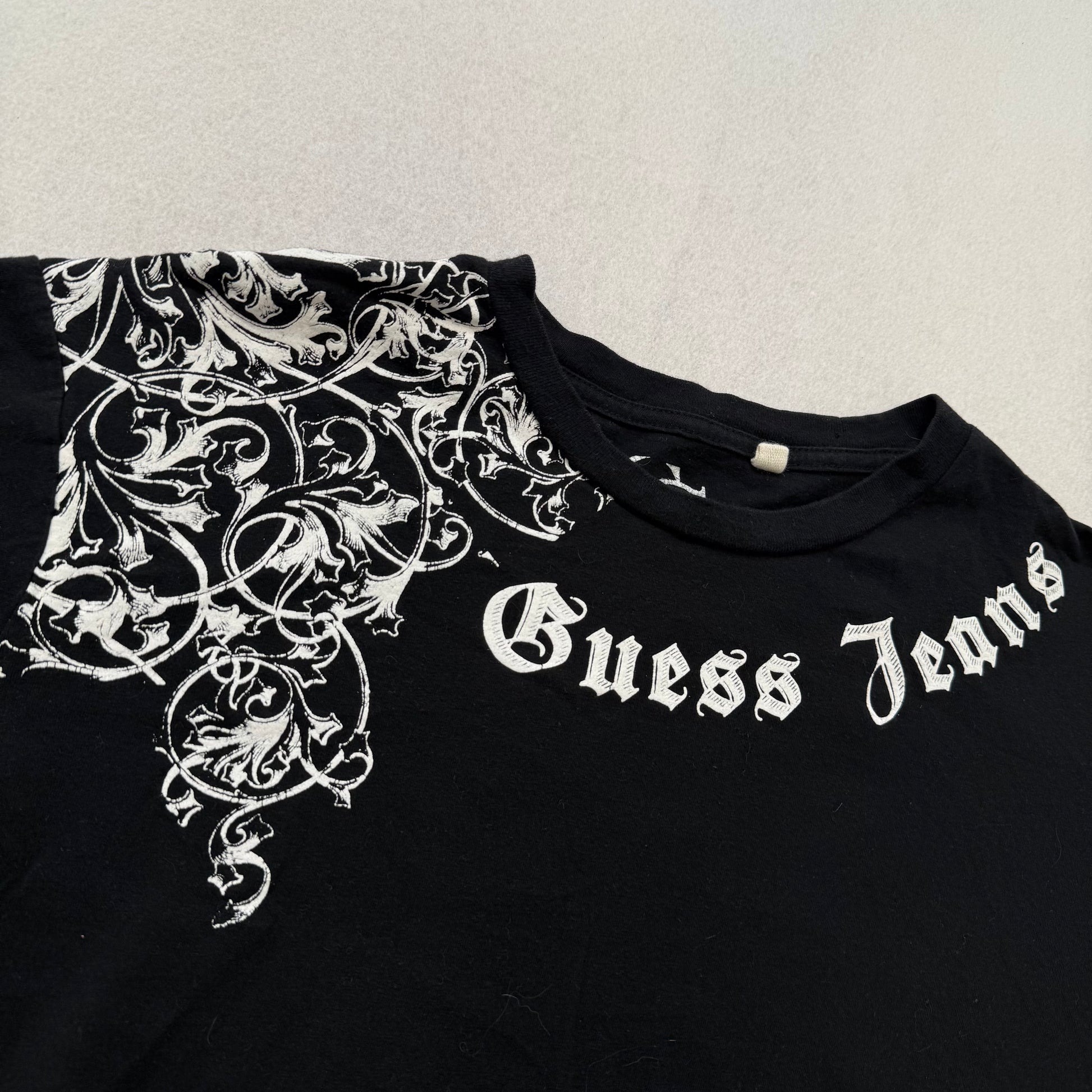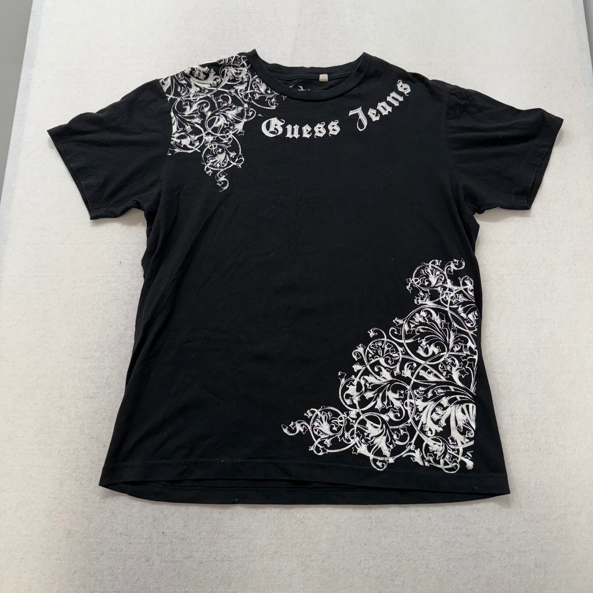 Guess Jeans Black Graphic T-Shirt “Legends Never Die” Gothic Print Size L
