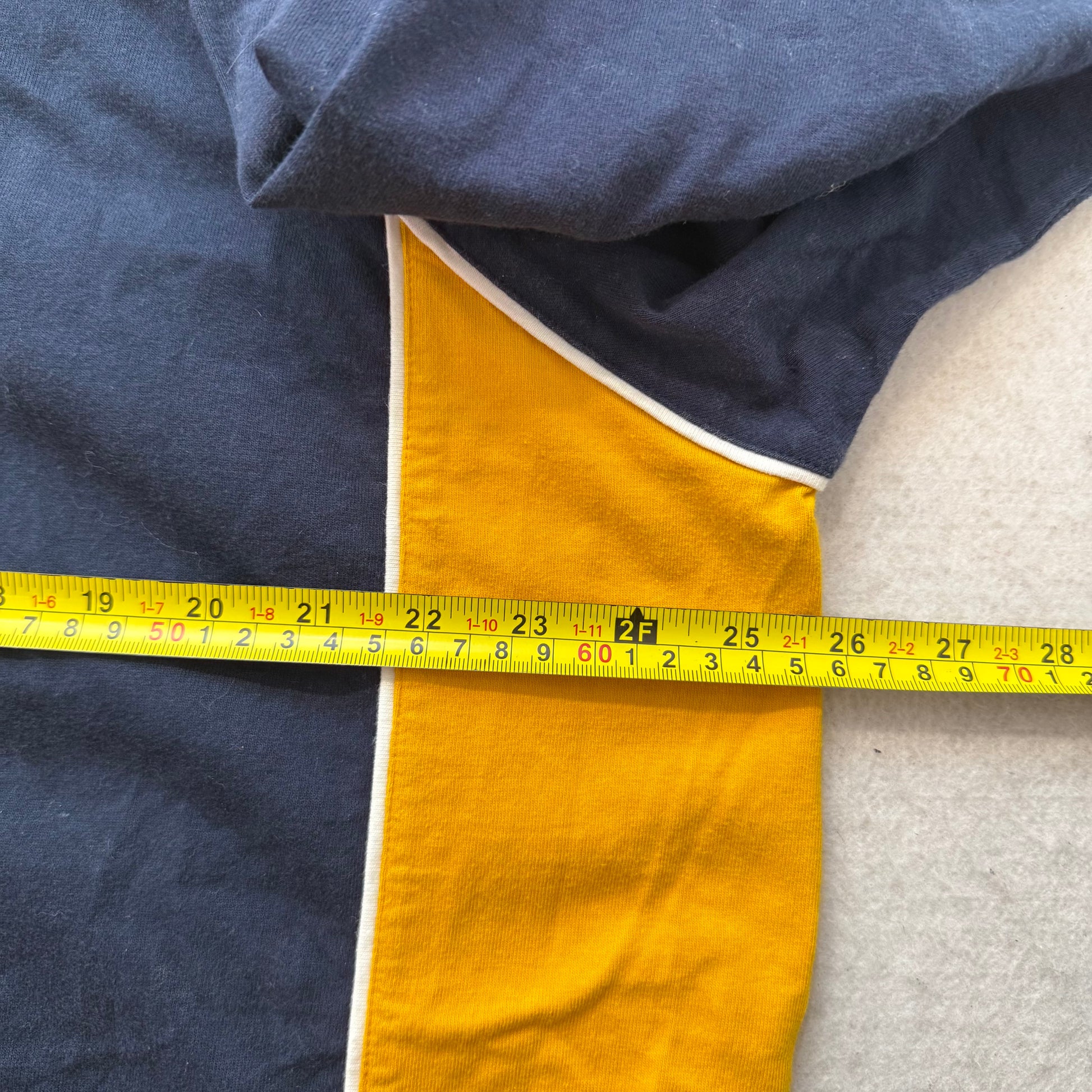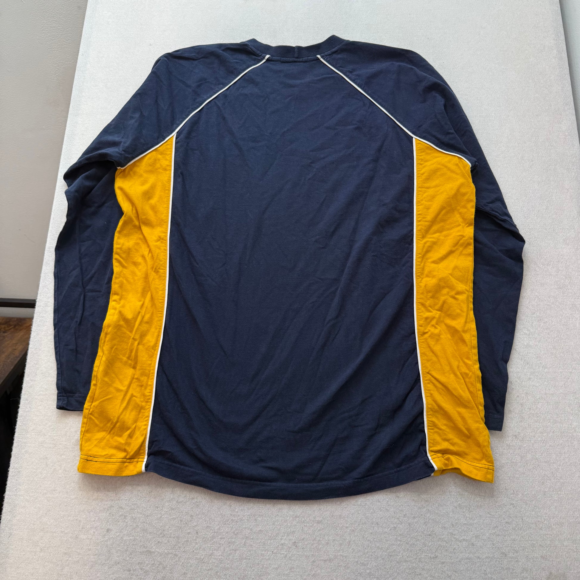 Nike Men Navy Yellow Cotton T-Shirt Long Sleeves Raglan Cut Swoosh Logo Size 2XL