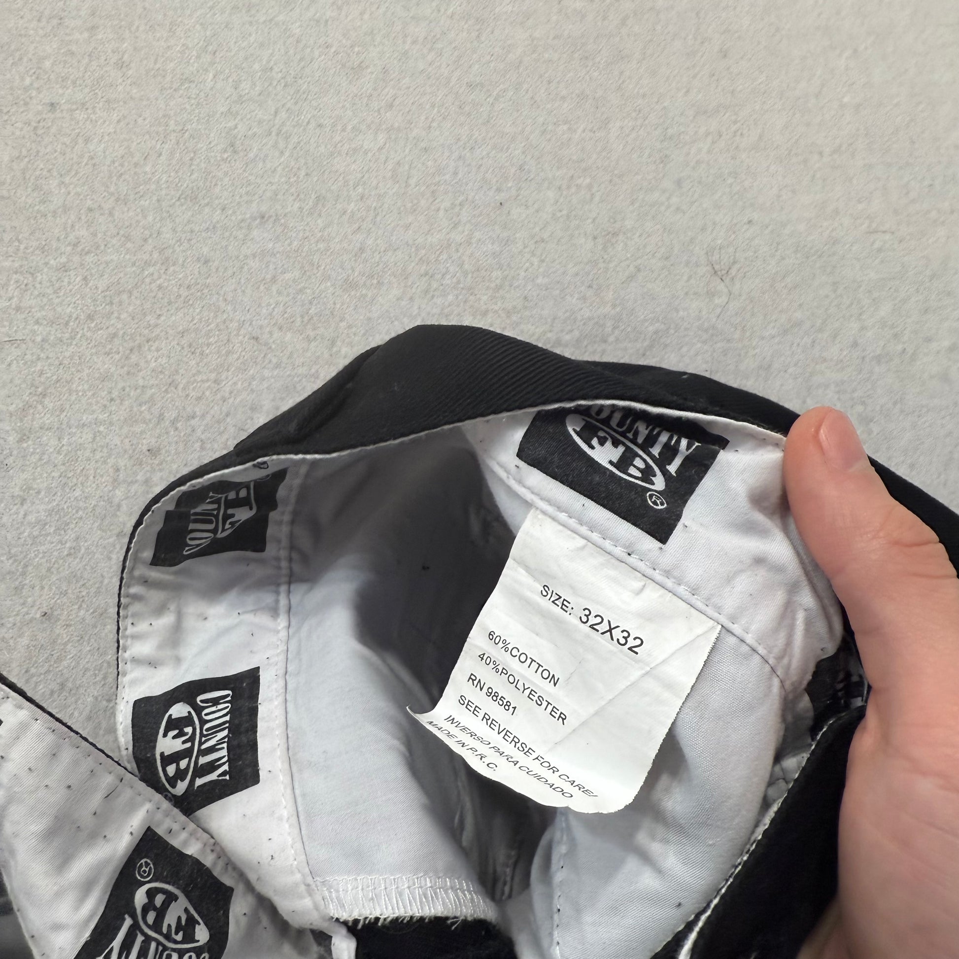 County FB Black Baggy Wide Leg Dress Pants feature a high-rise, relaxed fit for ultimate comfort. Made from soft, durable fabric, they offer ease of movement and a stylish silhouette. Perfect for casual, work, or semi-formal outfits, size 32x32.