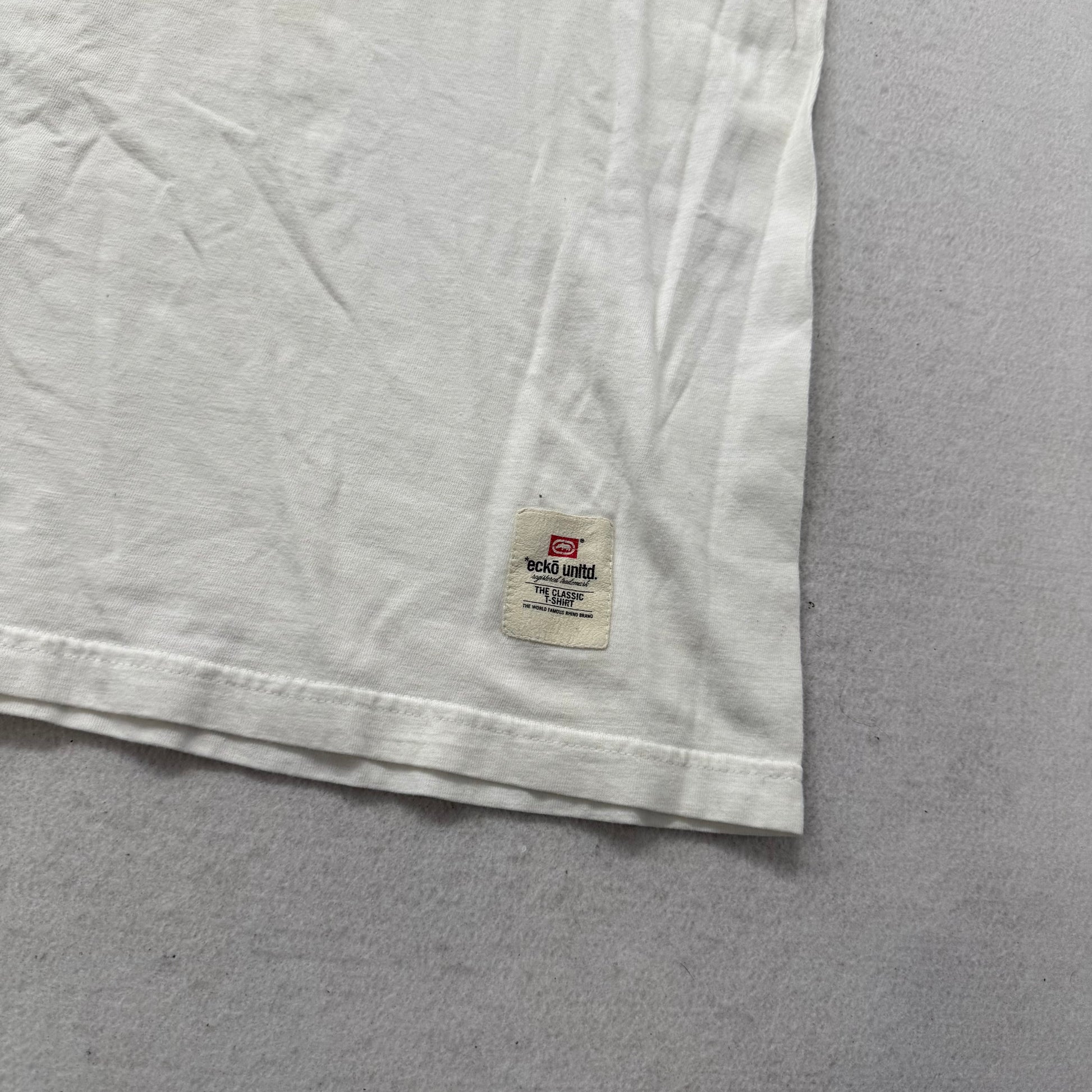 Ecko Unltd. Men White Cotton T-Shirt Short Sleeves Crew Neck Graphic Logo Size L
