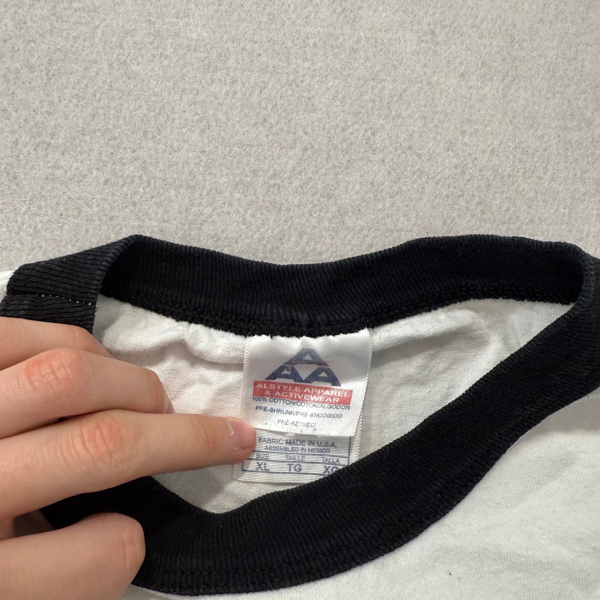Alstyle Men's White Cotton Ringer T-Shirt Short Sleeves Graphic Tee Size XL