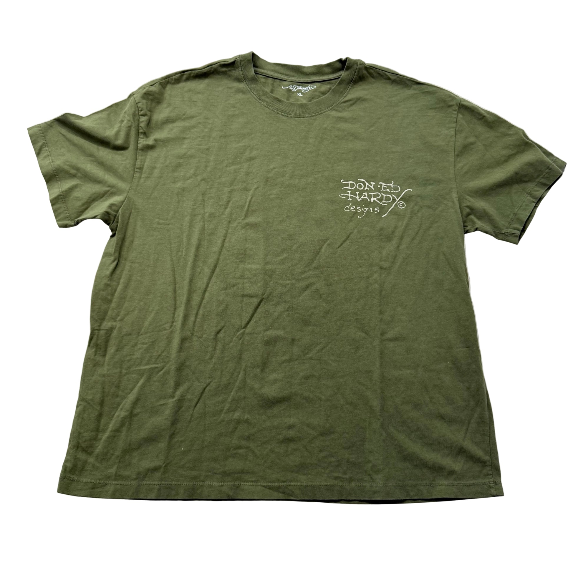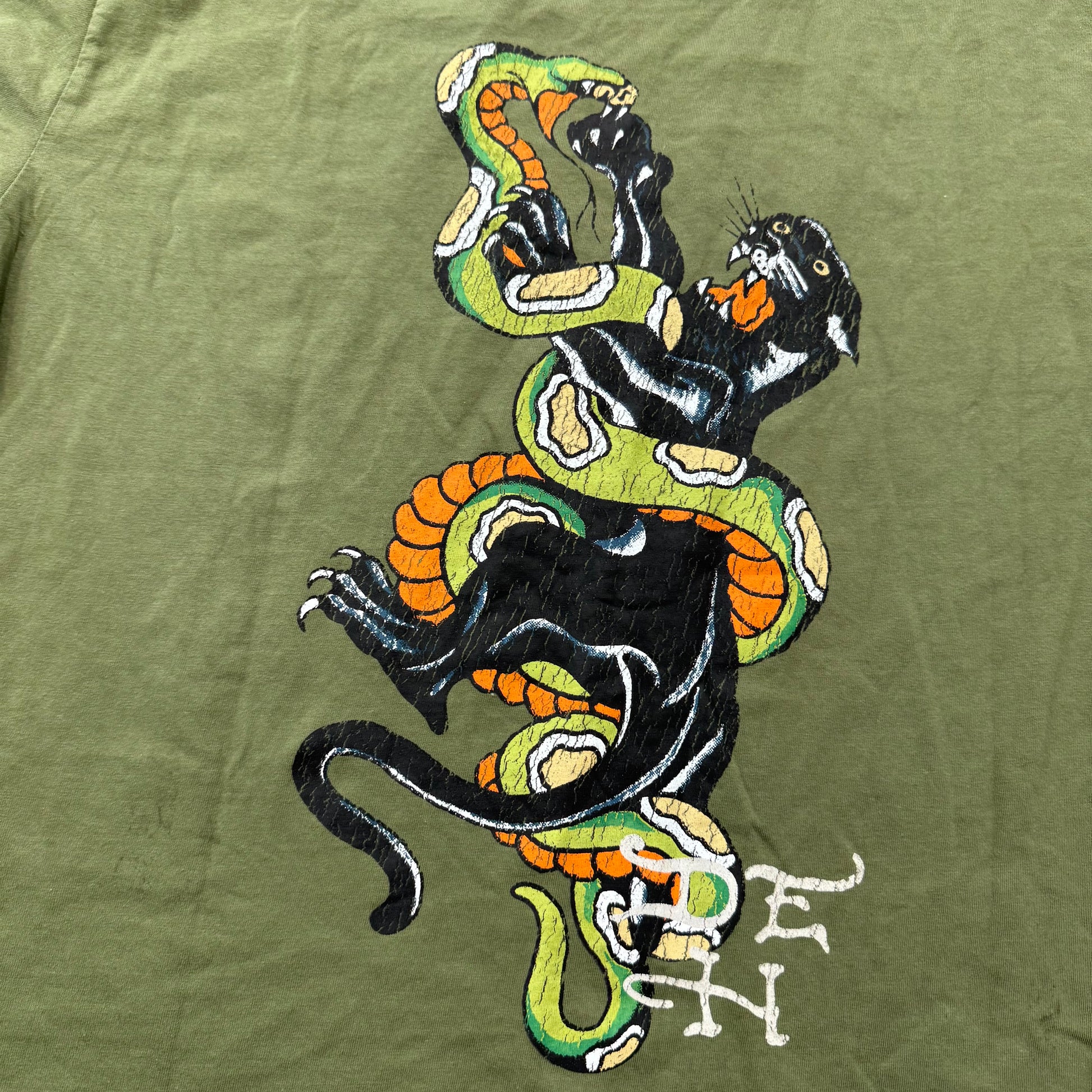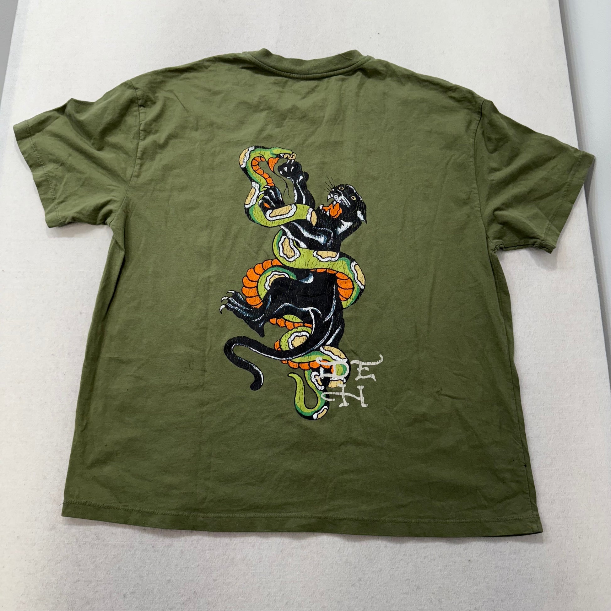 ED HARDY Men's Olive Green Cotton T-Shirt Black Panther & Snake Graphic Size XL