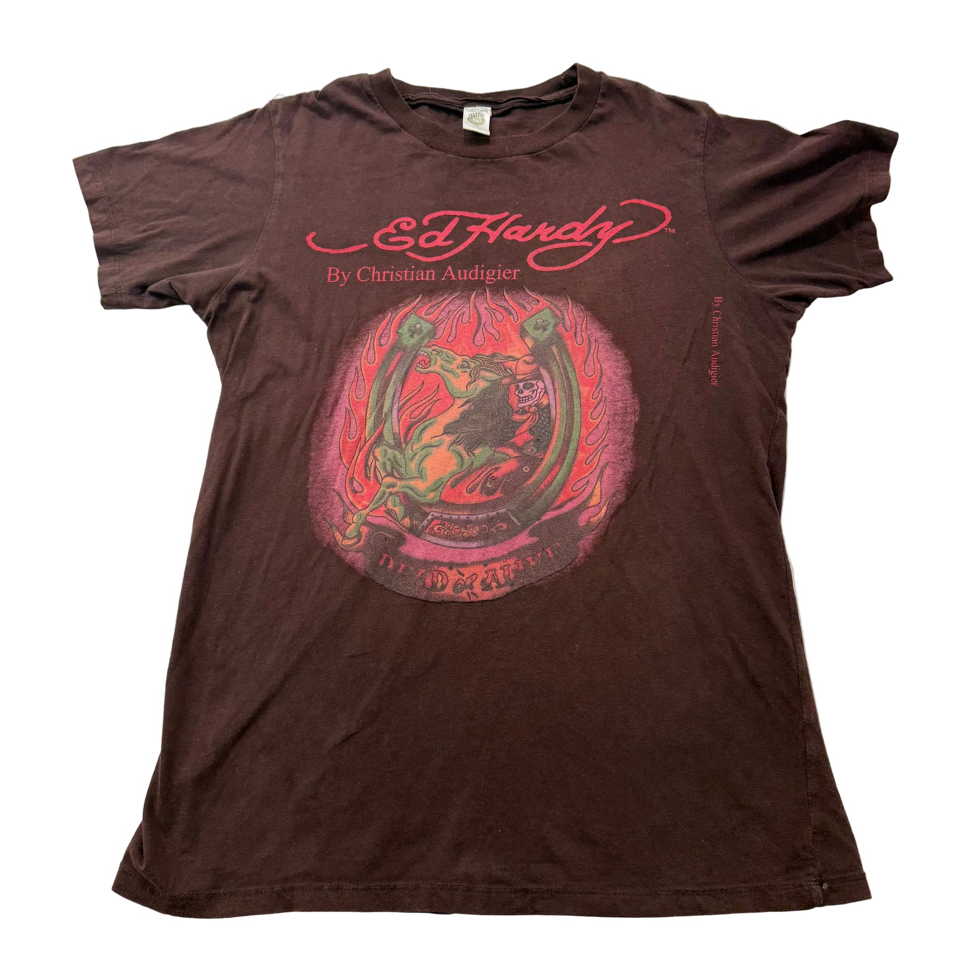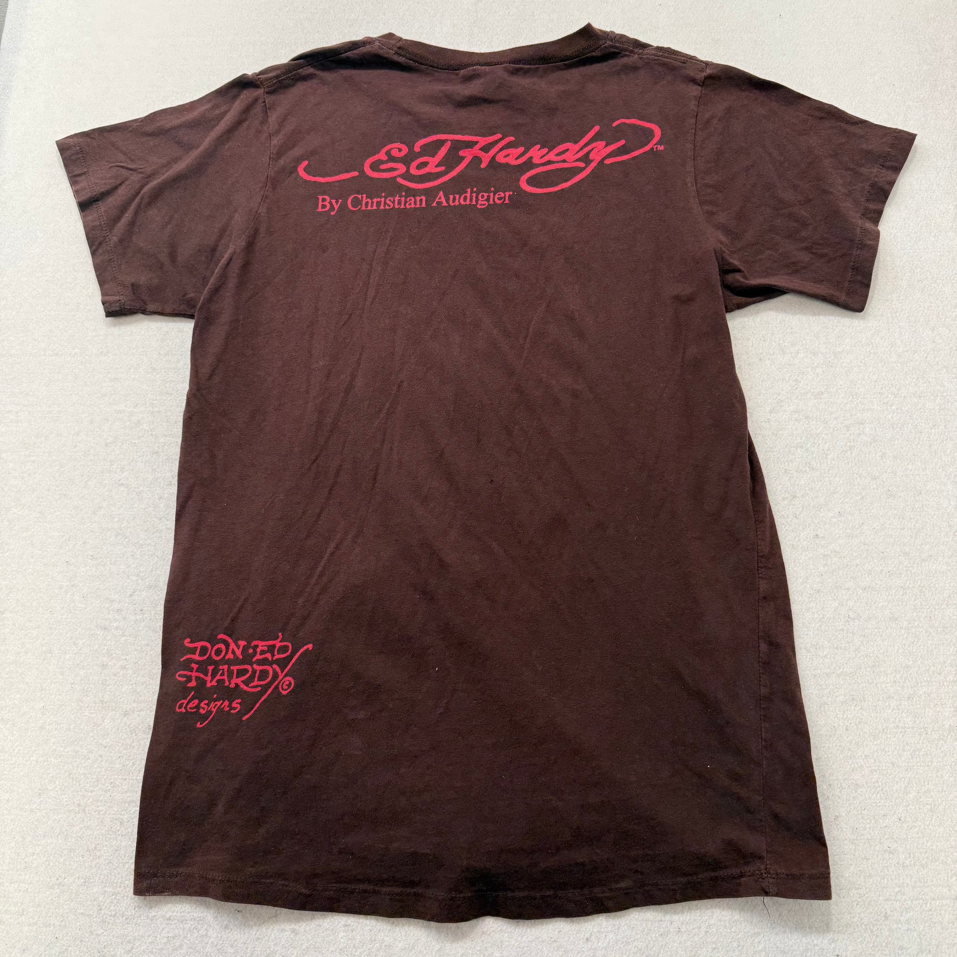 Ed Hardy by Christian Audigier Men's Brown Cotton T-Shirt Graphic Tee Size M