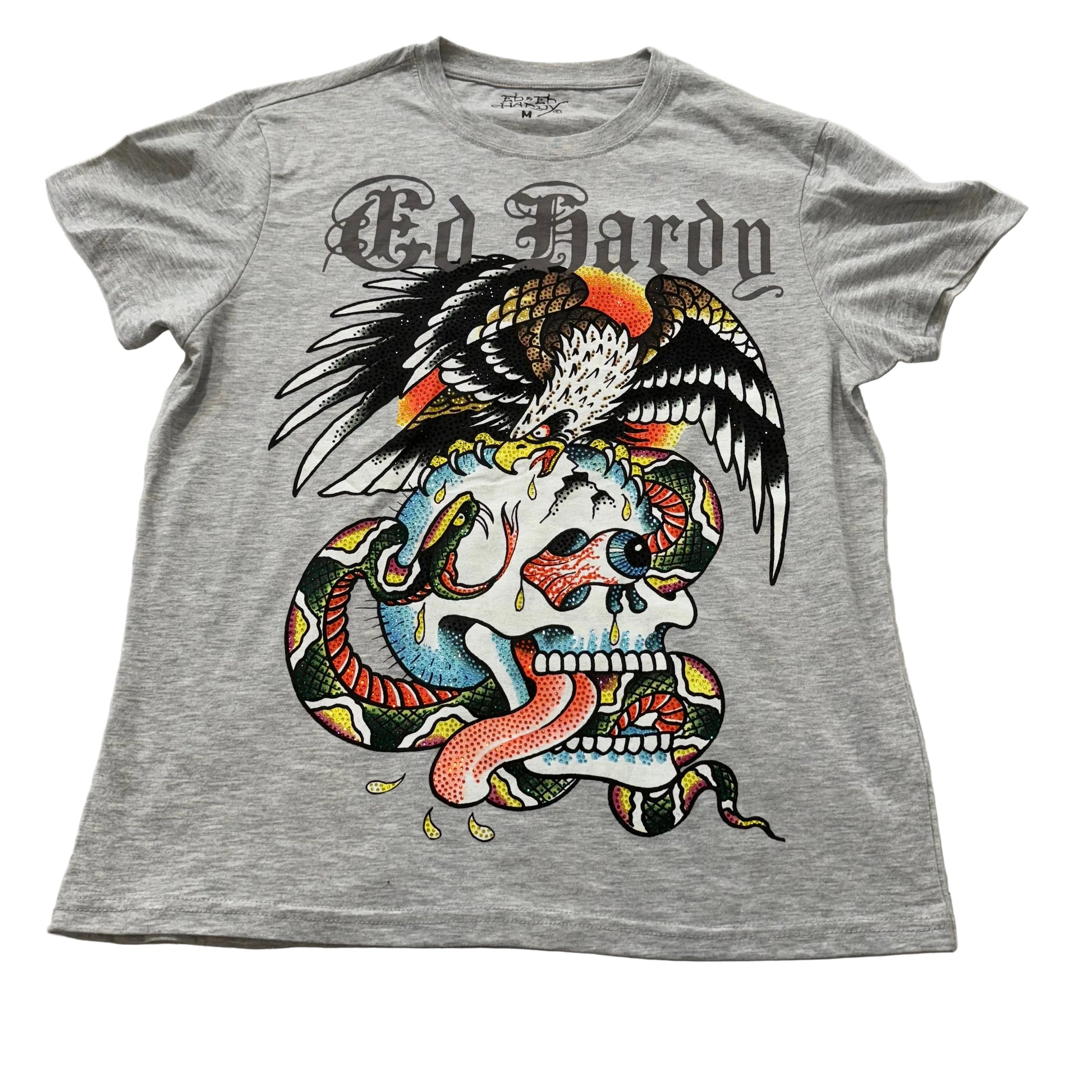 Ed Hardy Battle Skull Men's Heather Gray Cotton T-Shirt Graphic Tee Logo Size M