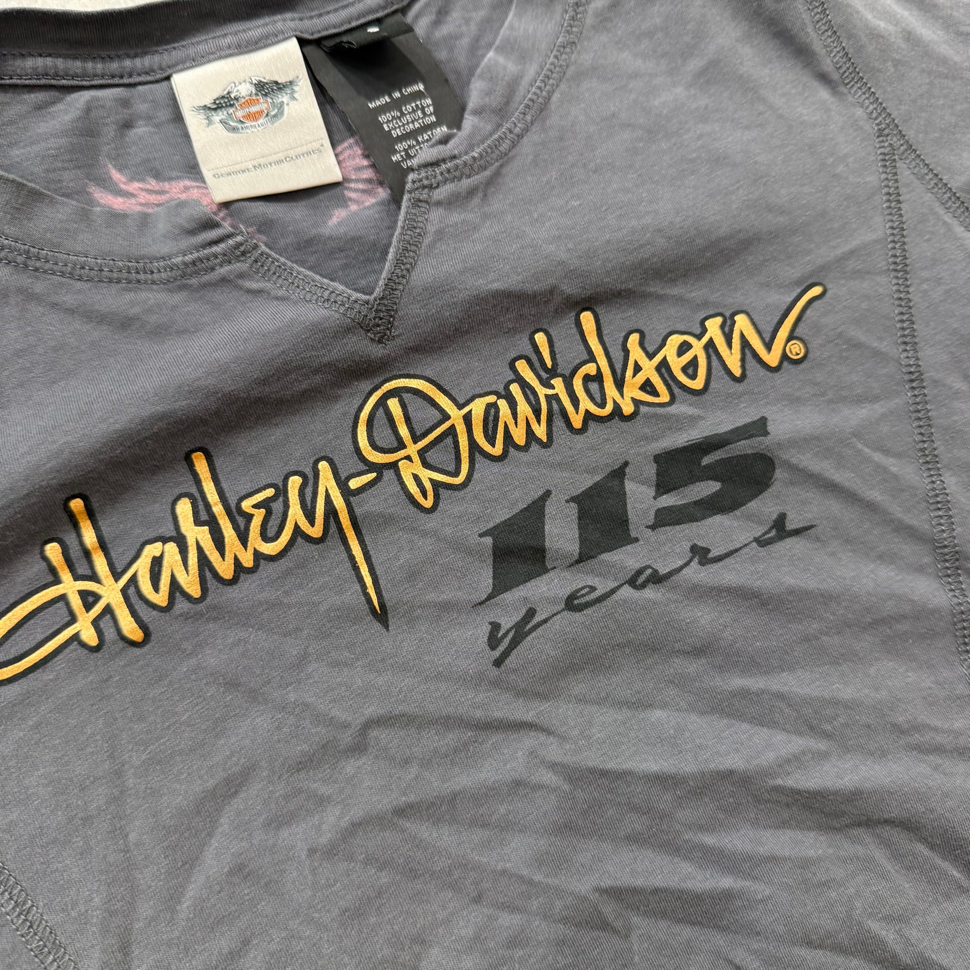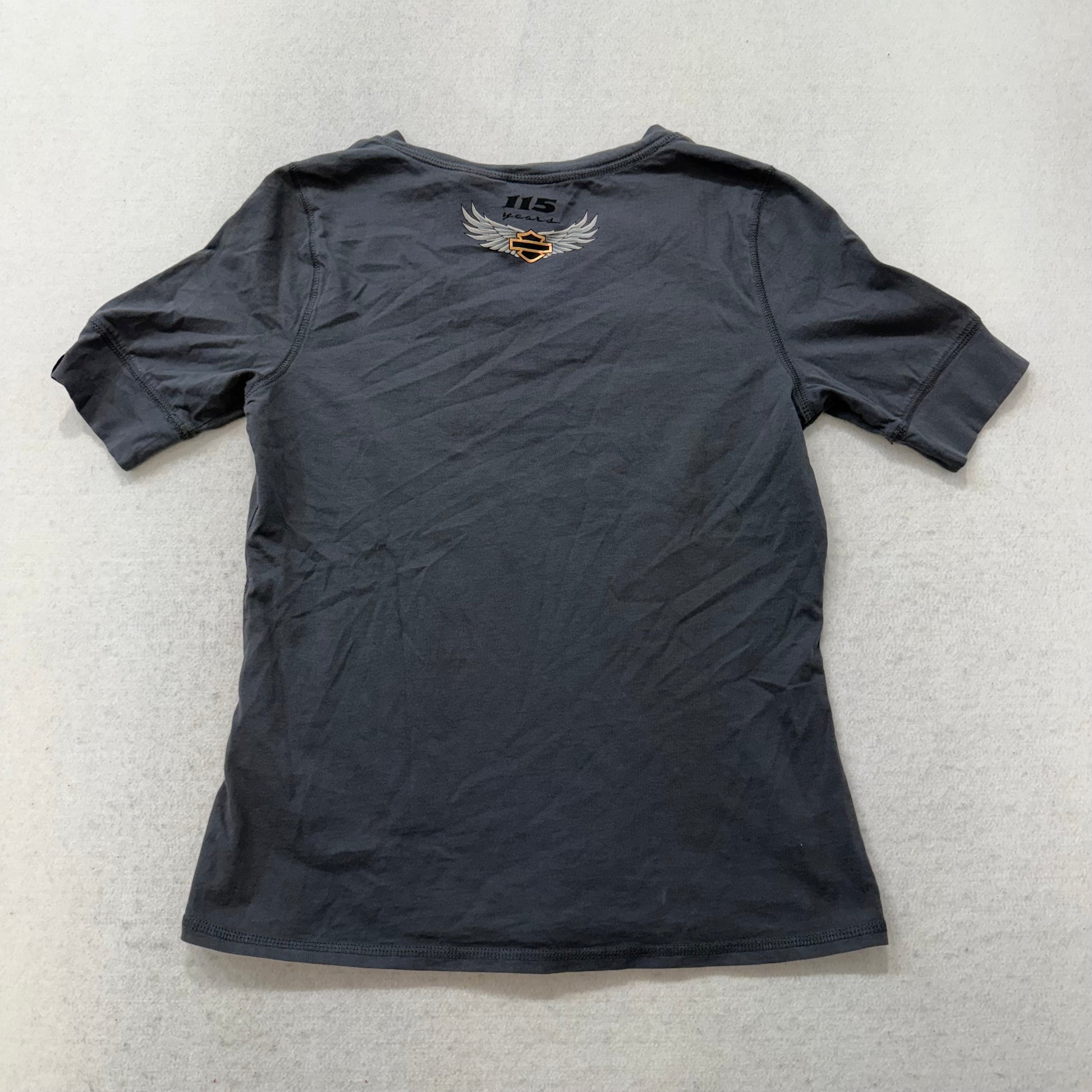 Harley-Davidson 115th Anniversary Women's Dark Gray Notch Neck T-Shirt Size S