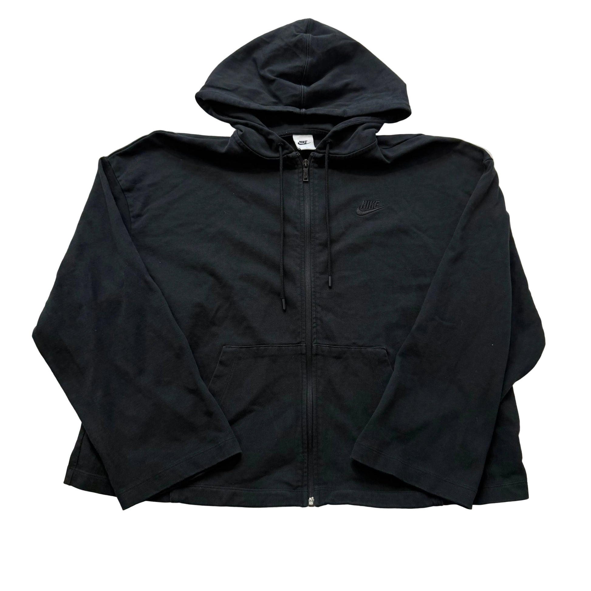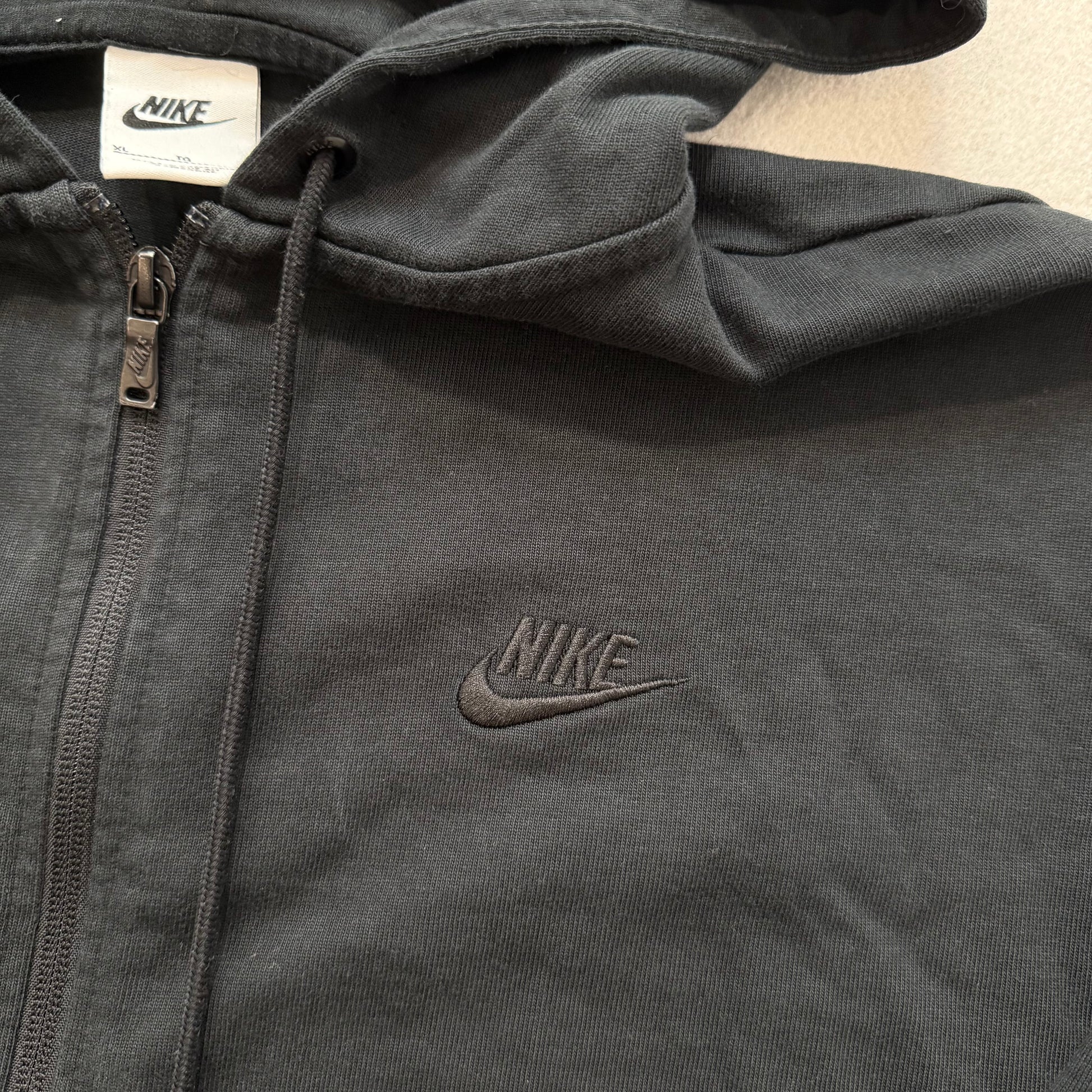 Nike Men's Black Cotton Blend Full Zip Hoodie Long Sleeves Swoosh Logo Size XL