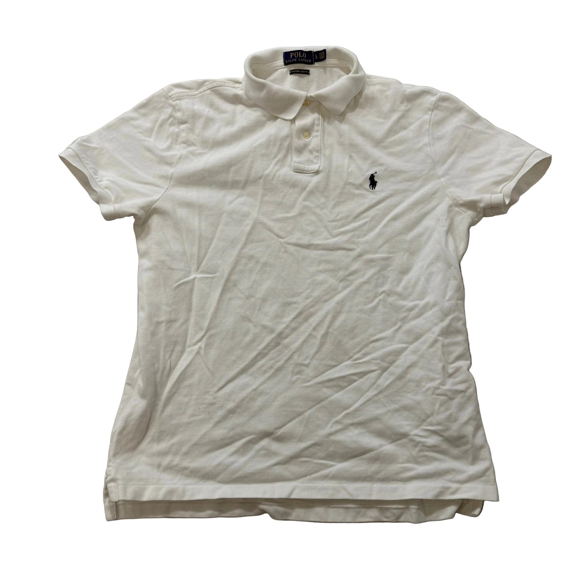 Polo Ralph Lauren Men's White Cotton Slim Fit Polo Shirt Short Sleeves Size L