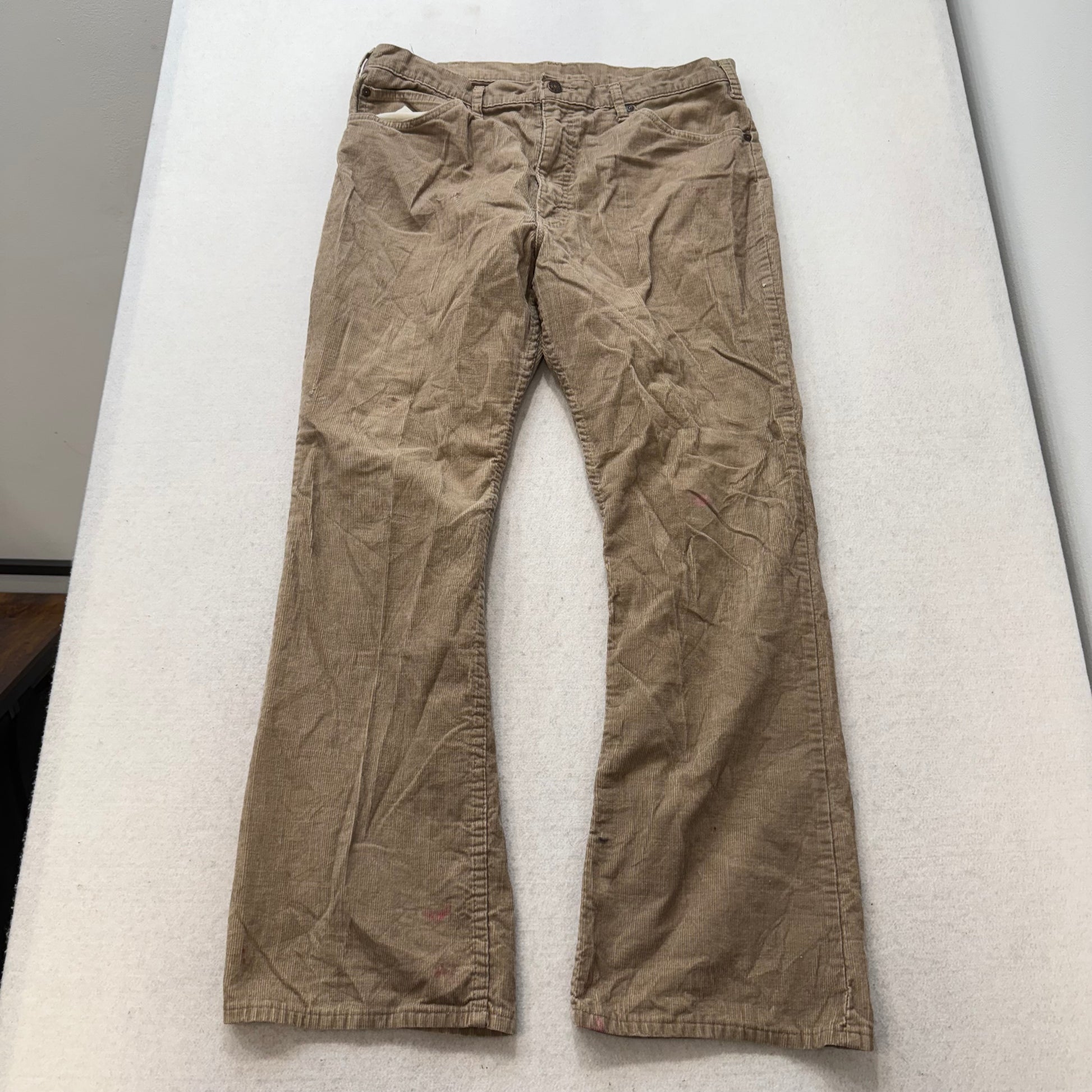 Vintage 1970s Men’s Plain Pockets Tan Corduroy Bootcut Pants Zip-Fly Size 36