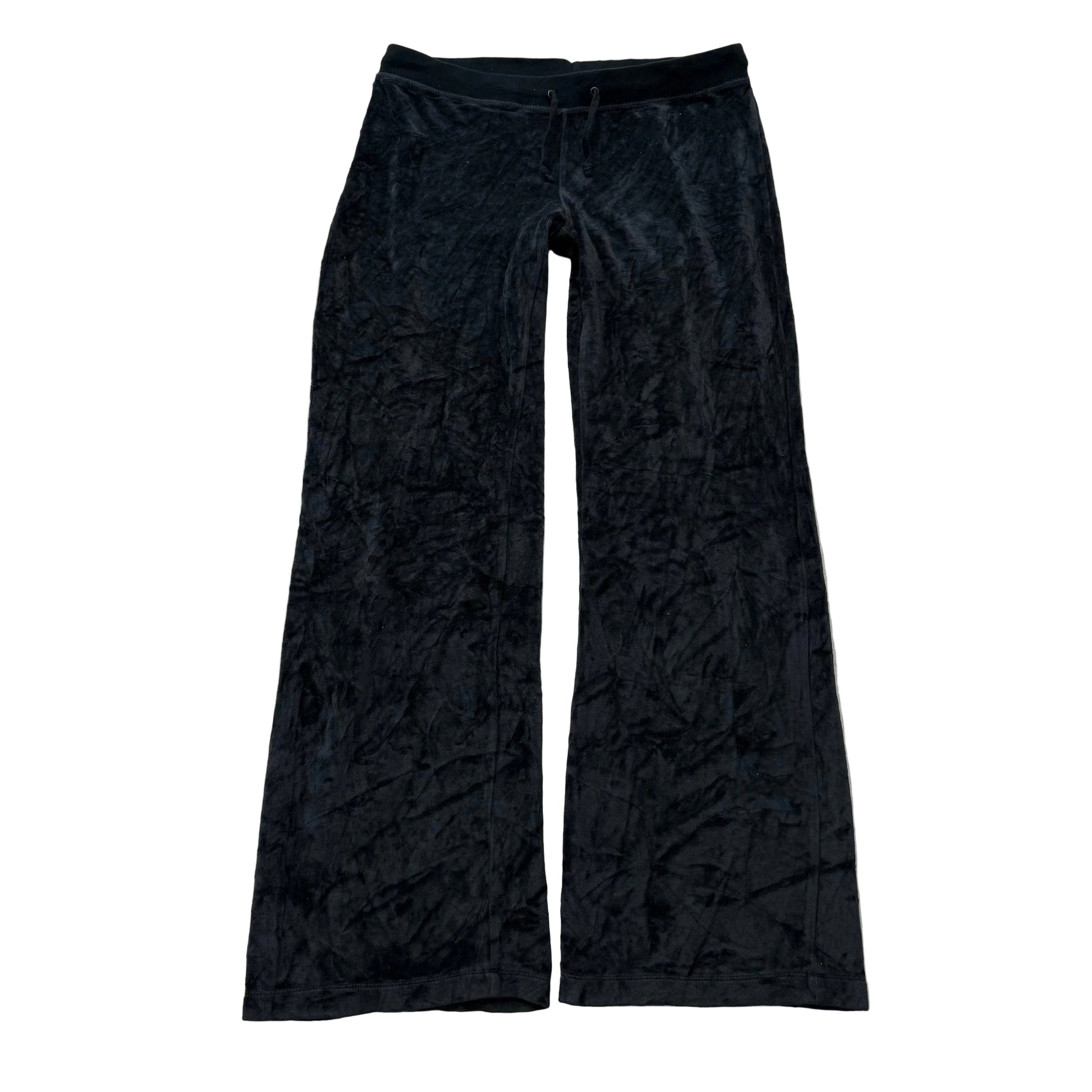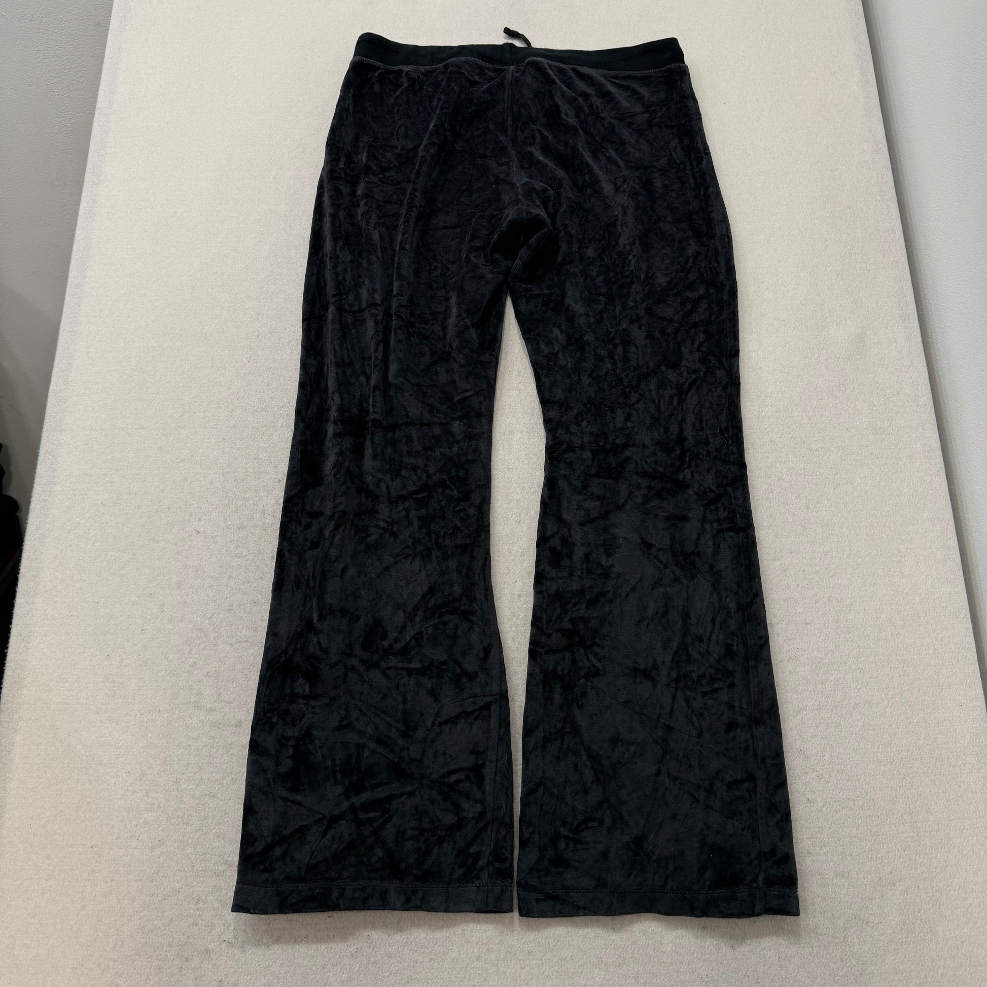 Juicy Couture Womens Black Velour Flared Wide Leg Track Pant Low Rise Y2K Size M