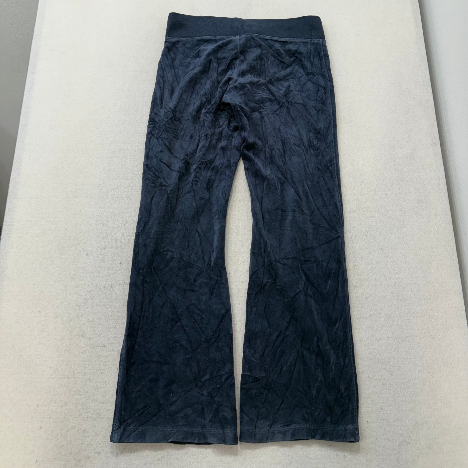 Vintage Juicy Couture Women's Navy Blue Velour Flared Track Pant Low Rise Size S