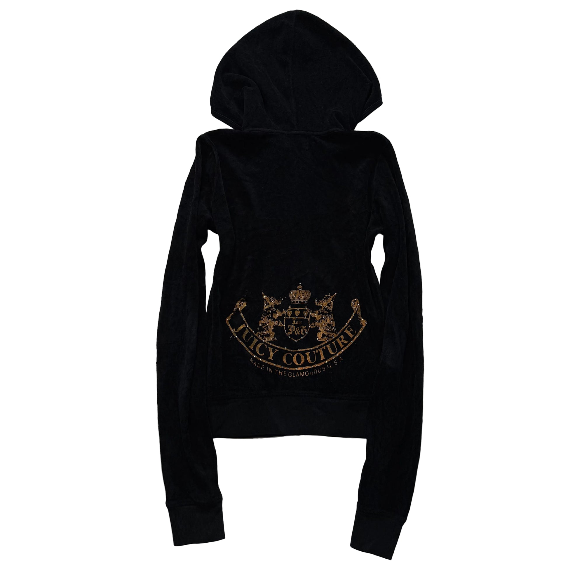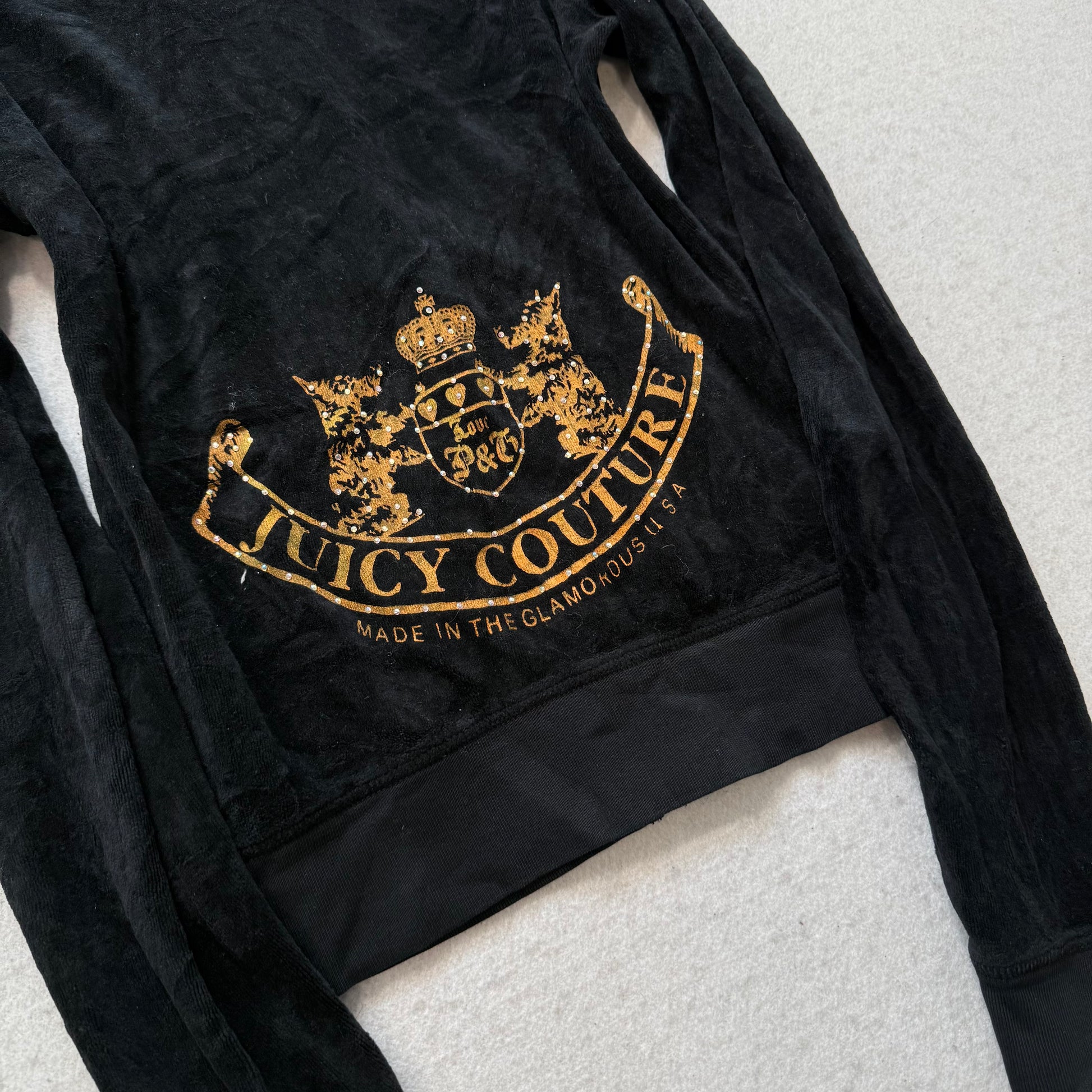 Vintage Juicy Couture Women's Black Velour Zip Up Hoodie Rhinestones Logo Size S