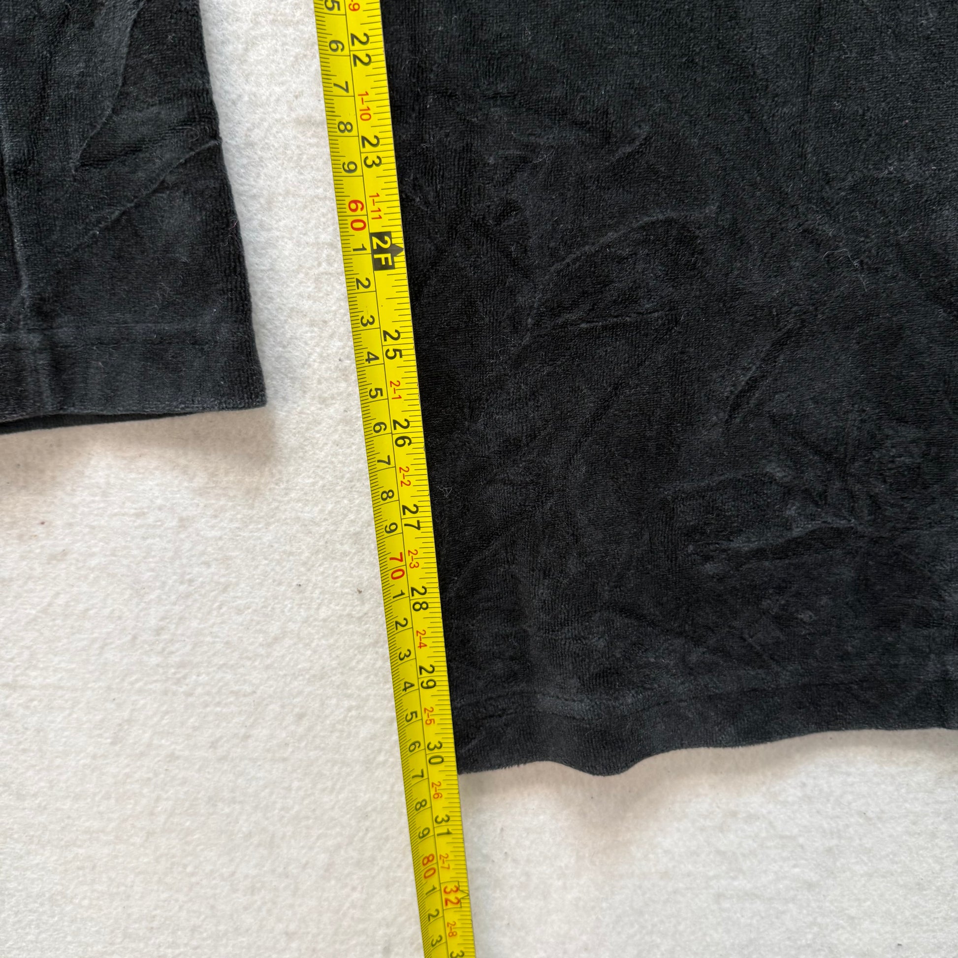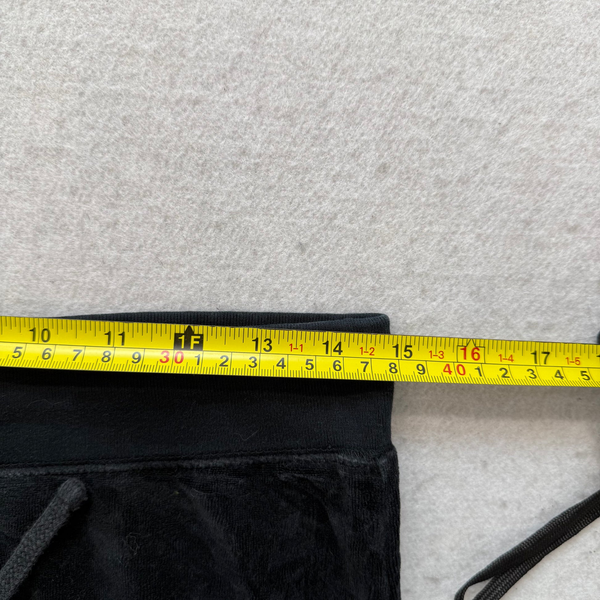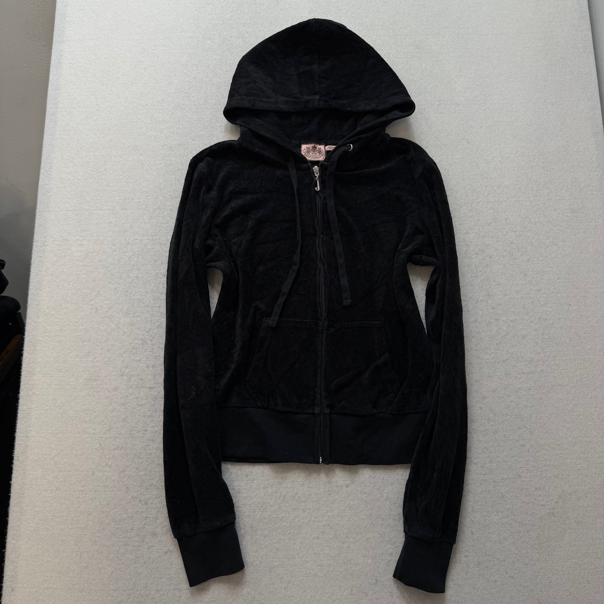 Juicy Couture Jet Black Velour Tracksuit Set in Size S, featuring a classic zip-up hoodie and matching flared pants for an iconic Y2K-inspired look. Crafted from soft, plush velour fabric for cozy comfort and a sleek finish. Designed with a flattering, coordinated silhouette perfect for lounging or casual streetwear styling. Pre-Owned Excellent condition and ready to wear.