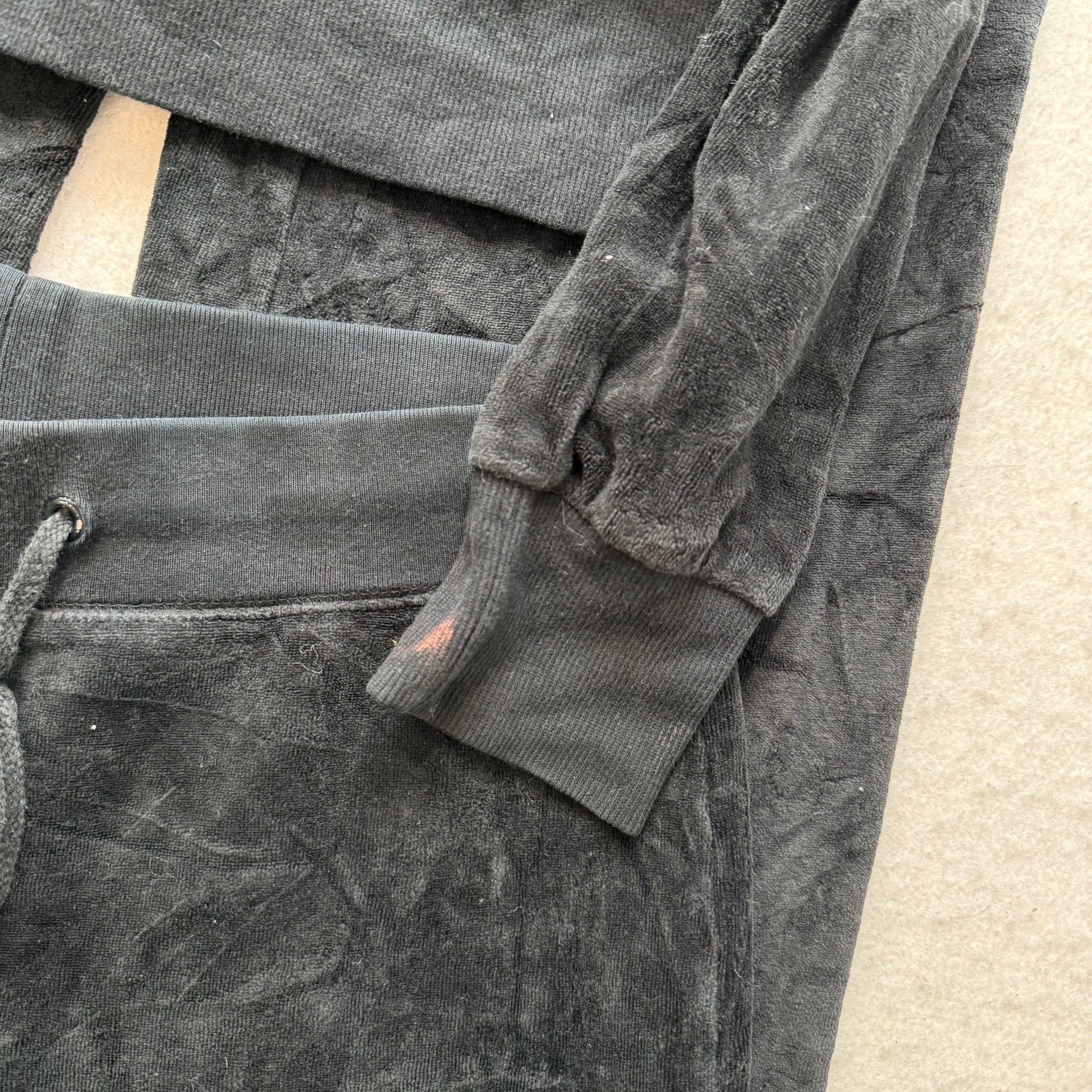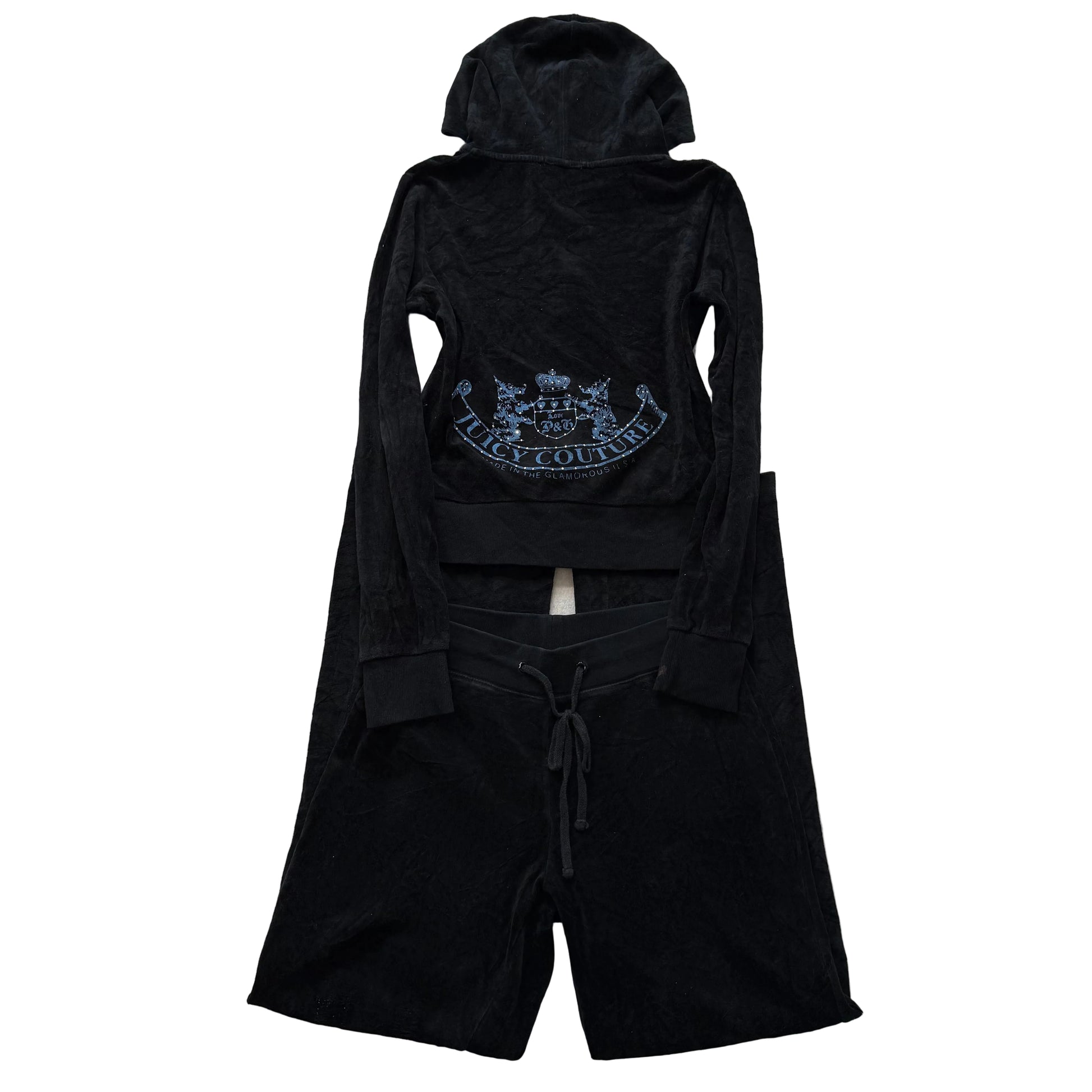 Juicy Couture Jet Black Velour Tracksuit Set Zip Up Hoodie & Flared Pant Size S