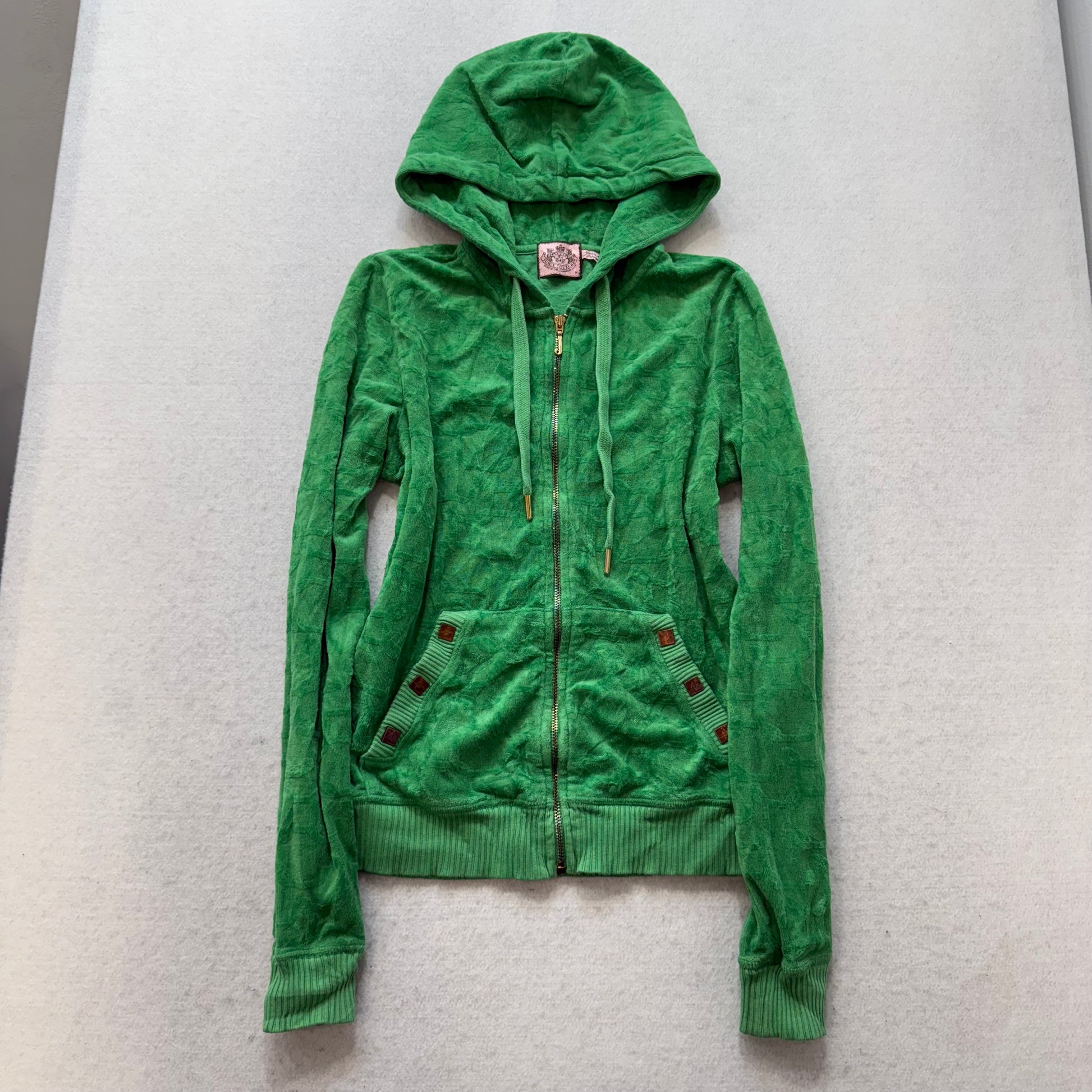 Juicy Couture Women's Kelly Green Velour Zip Up Hoodie Kangaroo Pockets Size M