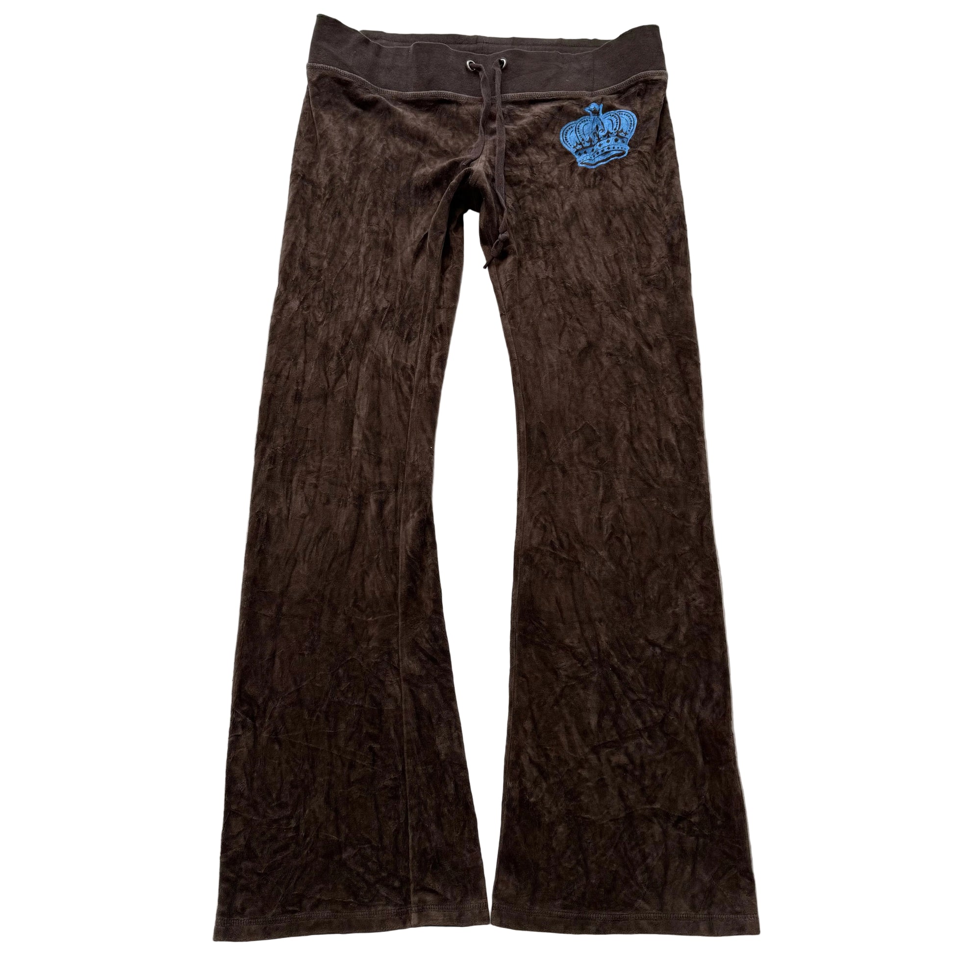 Vintage Juicy Couture Women's Brown Velour Flared Track Pant Crown Logo Size L