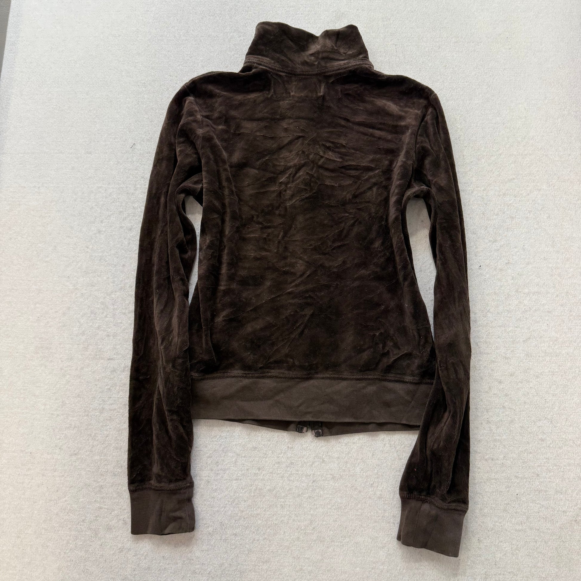 Juicy Couture Women's Brown Velour Full Zip Track Jacket Mock Neck Y2K Size M