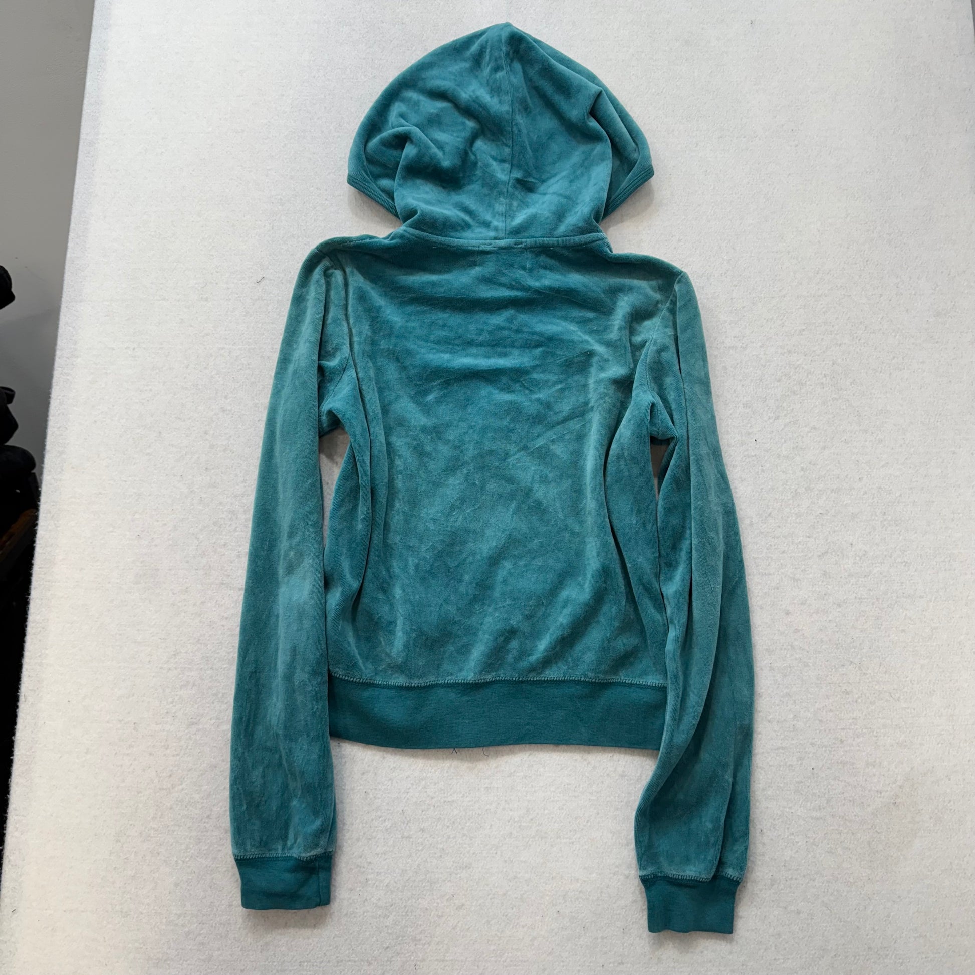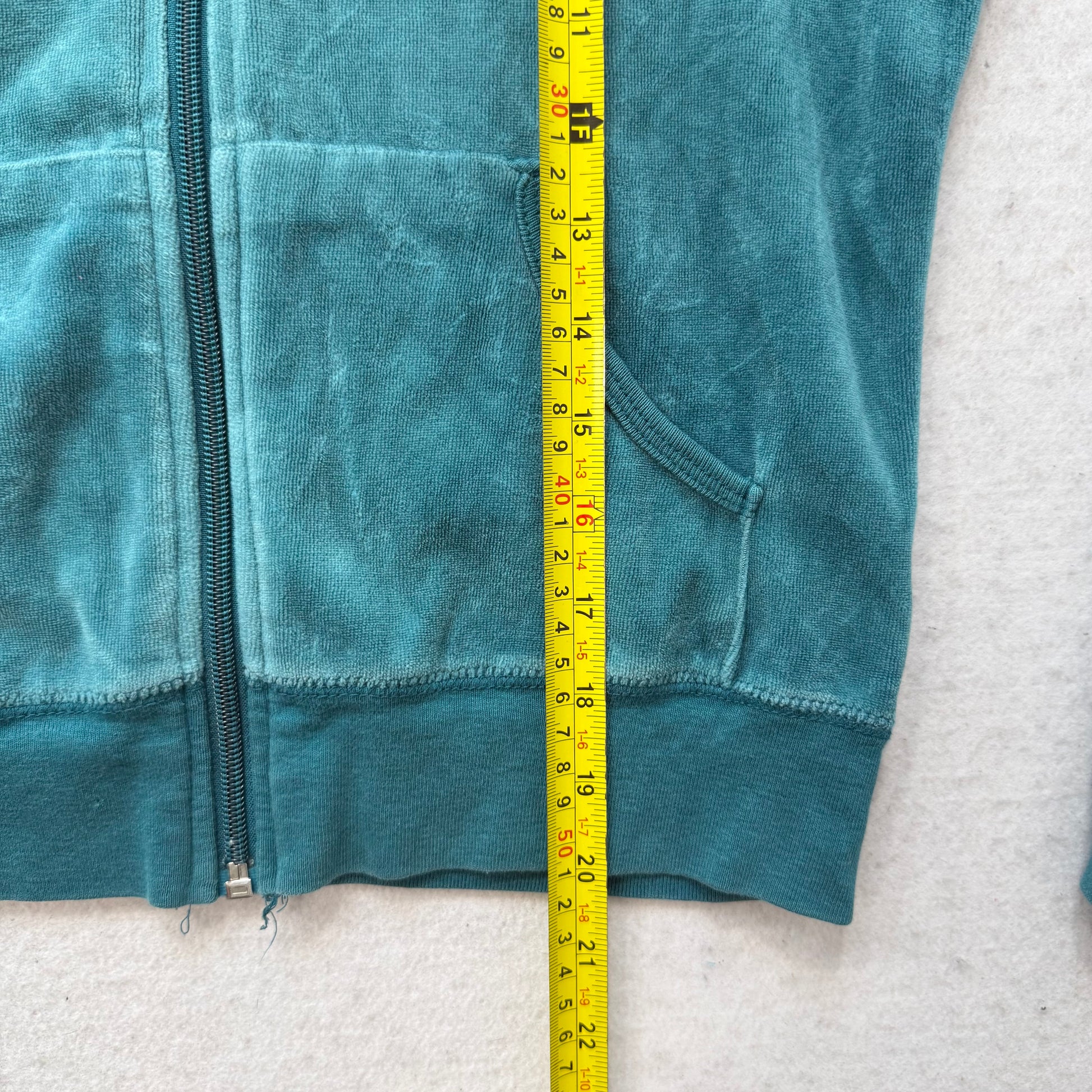Juicy Couture Women's Teal Velour Full Zip Hoodie Ribbed Cuffs Loungewear Size M
