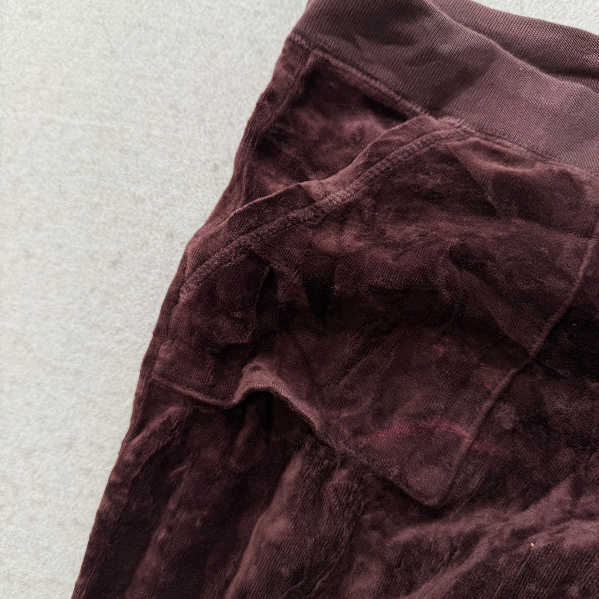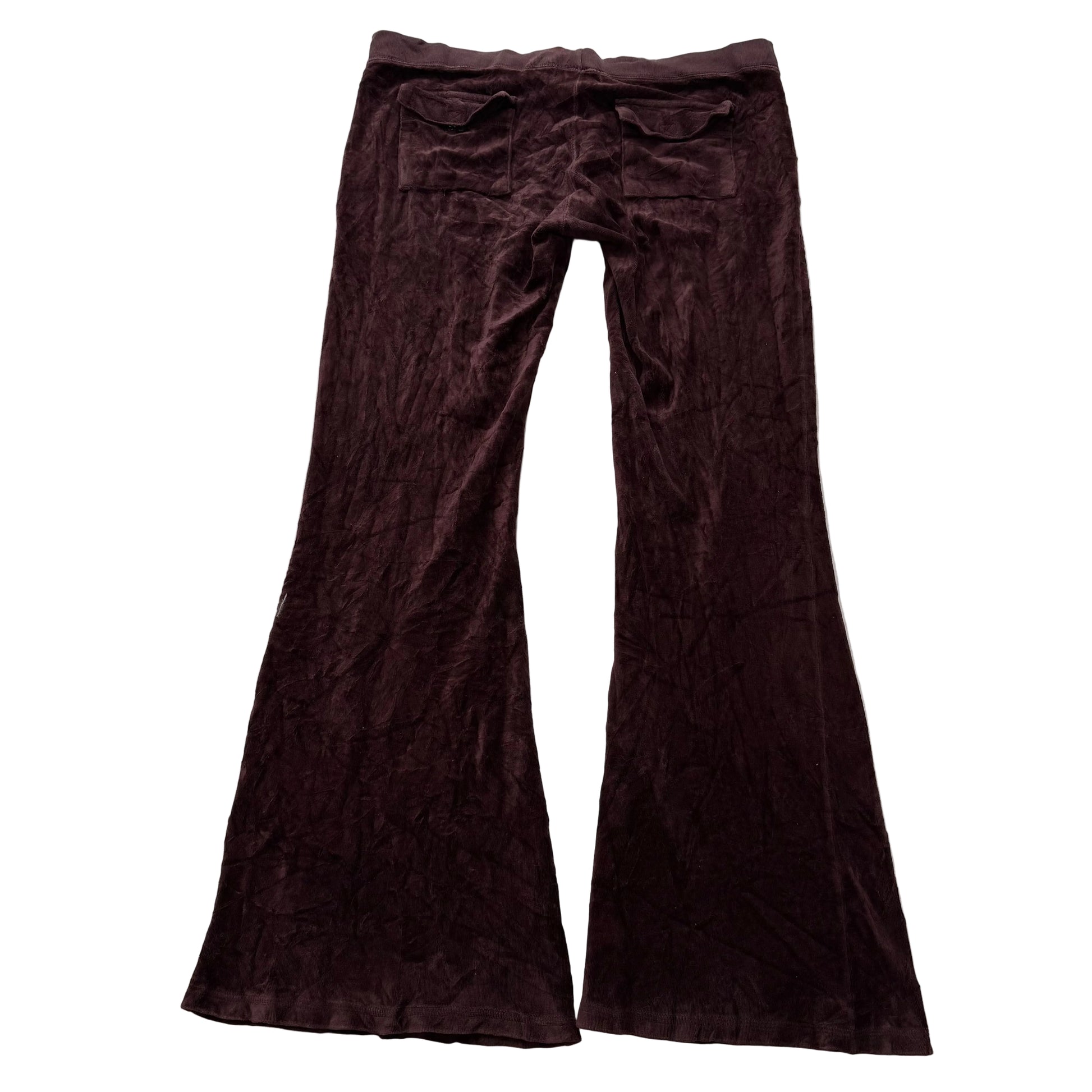 Juicy Couture Women's Brown Velour Flared Track Pants Back Flap Pockets Size M
