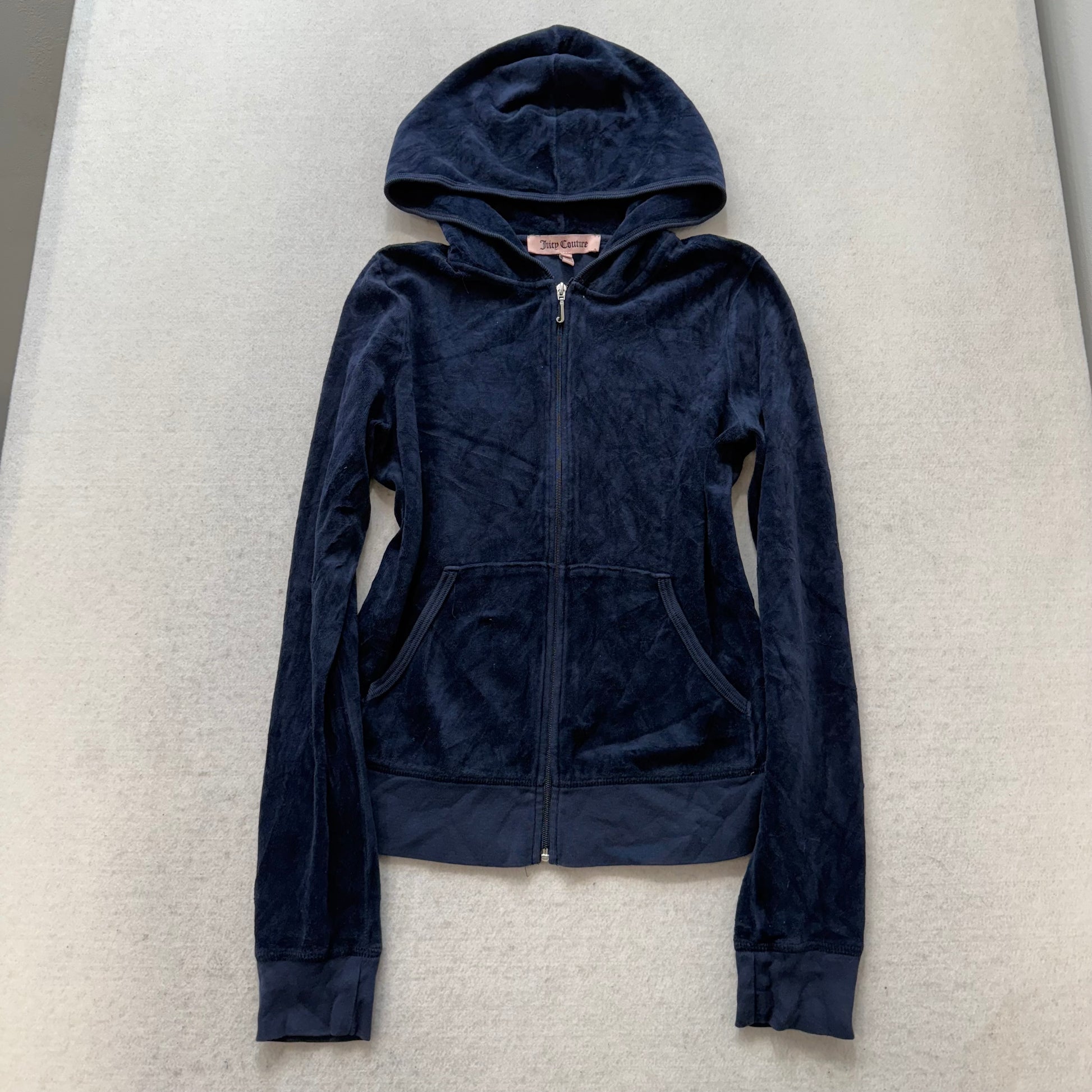 Juicy Couture Womens Midnight Navy Blue Velour Zip Up Hoodie Graphic Logo Size M