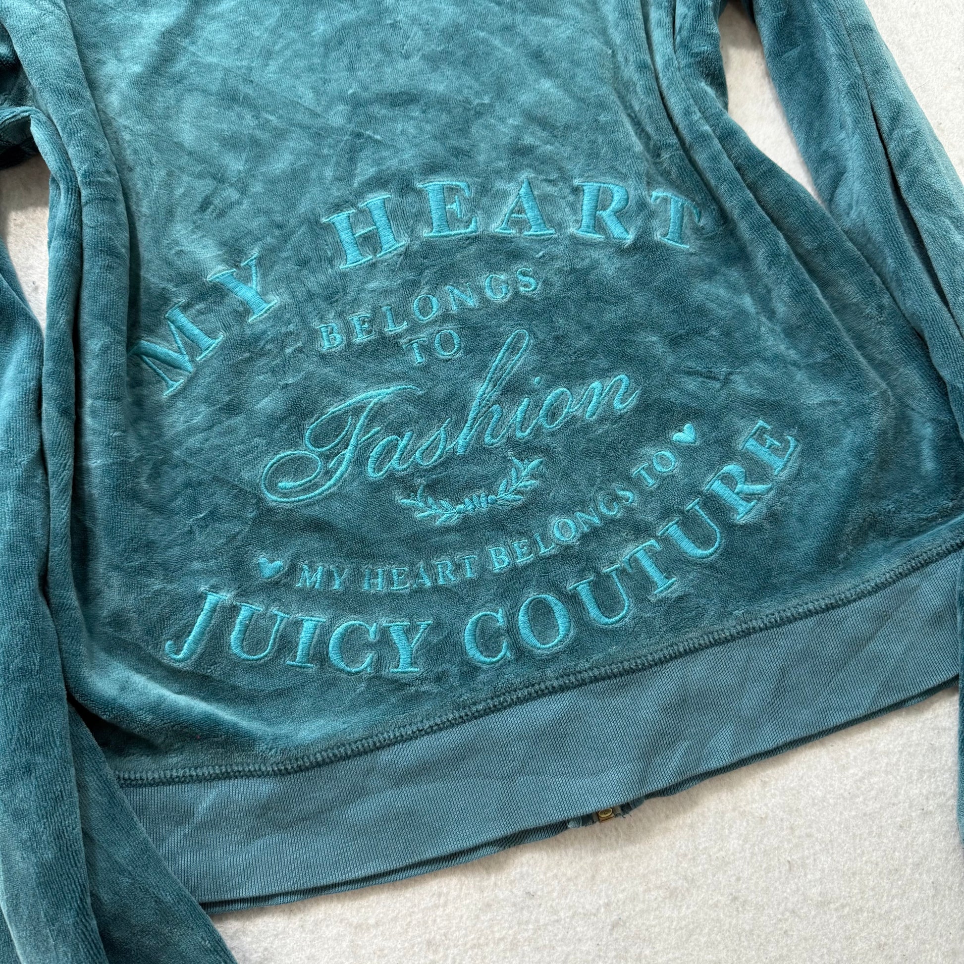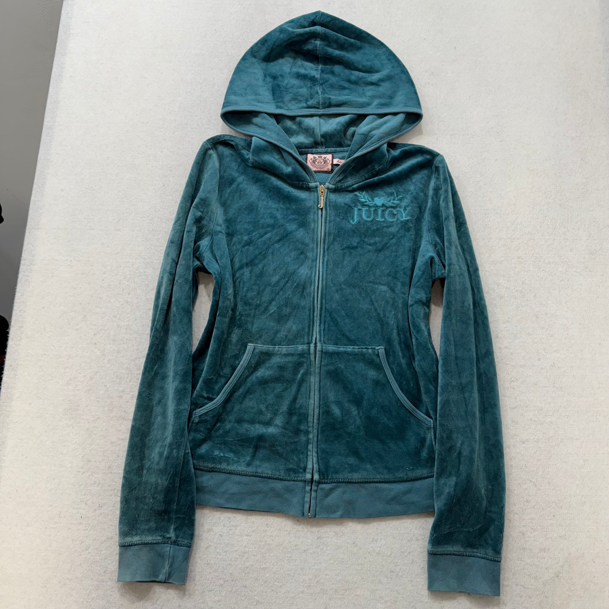Juicy Couture Women's Dark Teal Velour Zip Up Hoodie Embroidered Logo Size XL