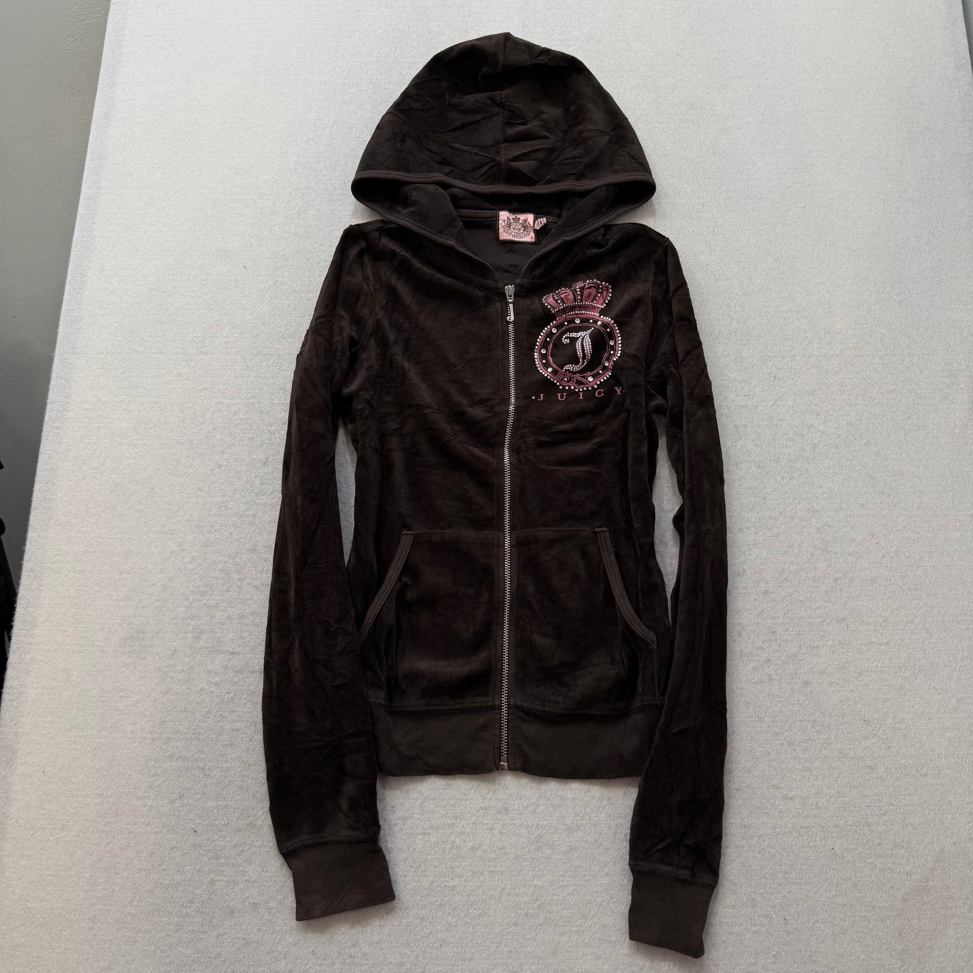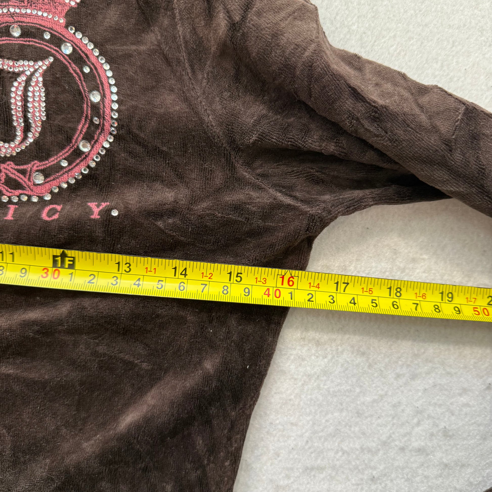 Vintage Juicy Couture Women's Brown Velour Zip Up Hoodie Rhinestones Logo Size S