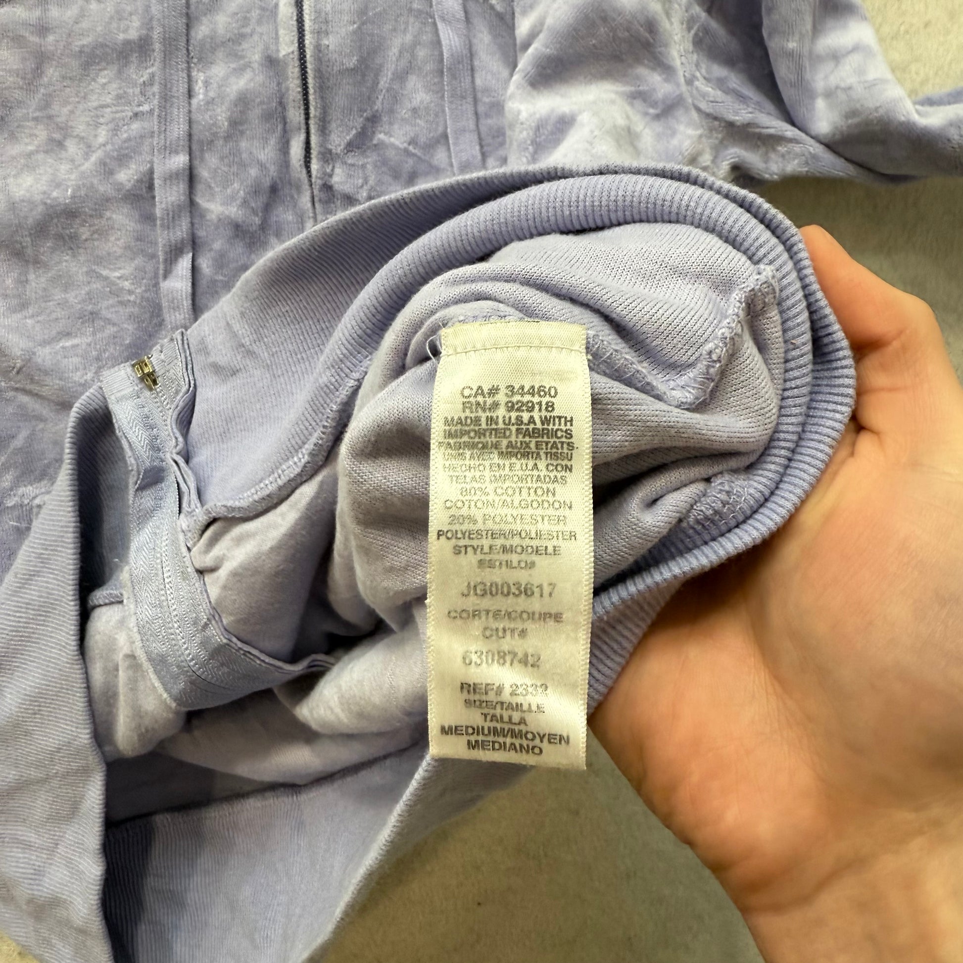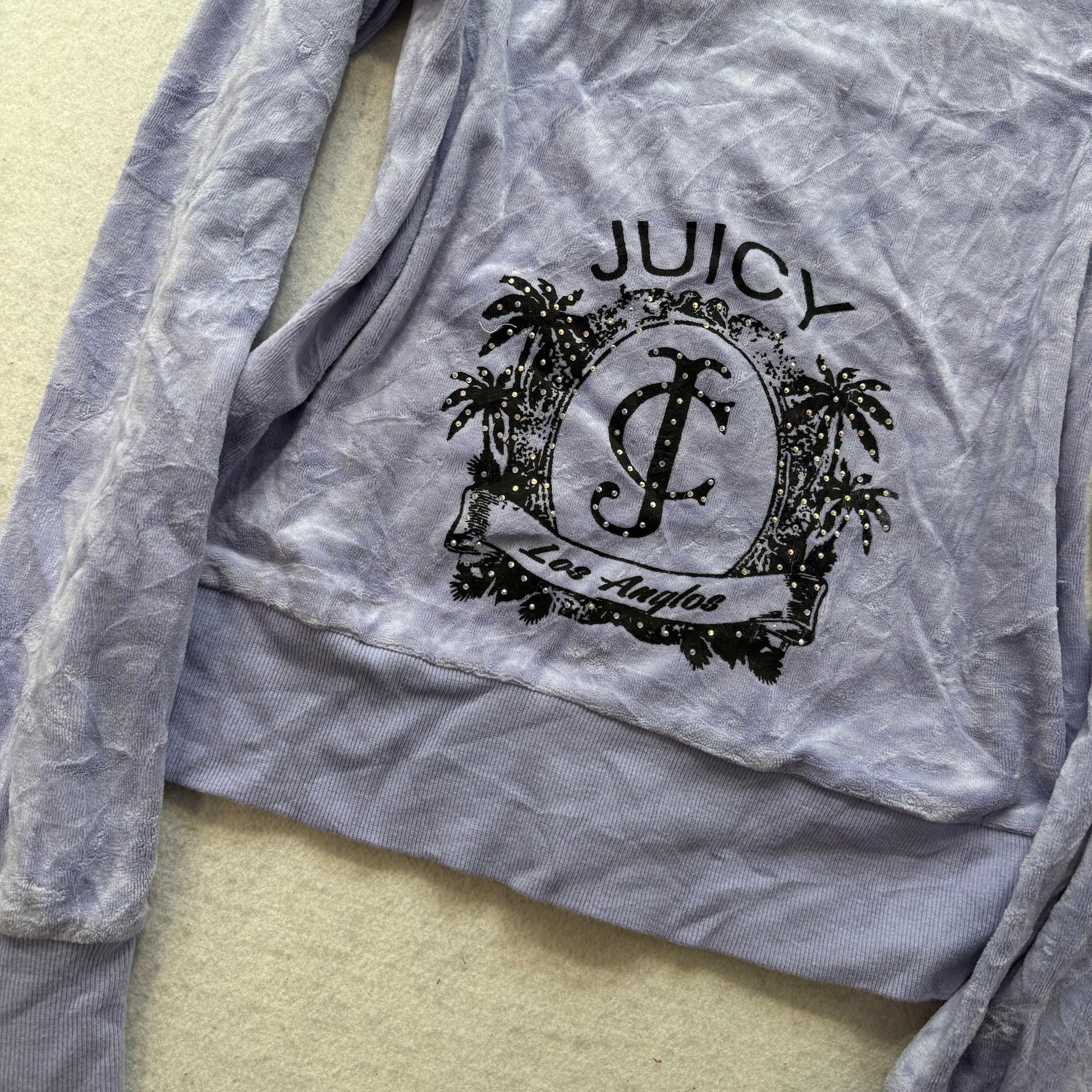 Juicy Couture Los Anglos Lavender Velour Zip-Up Hoodie Rhinestone Pockets Size M