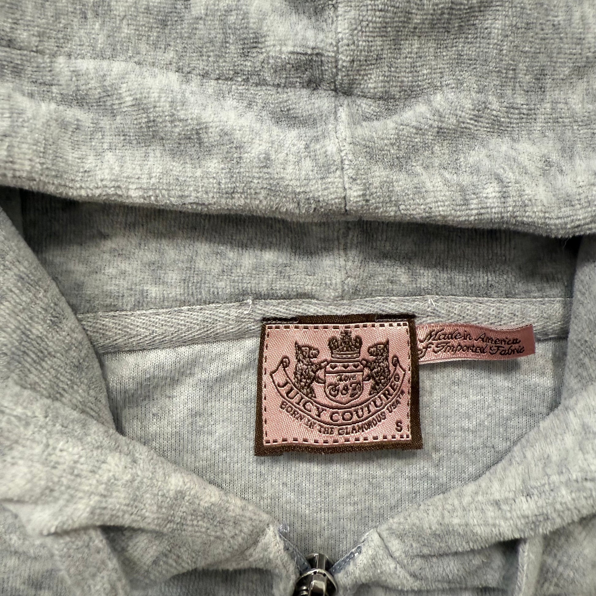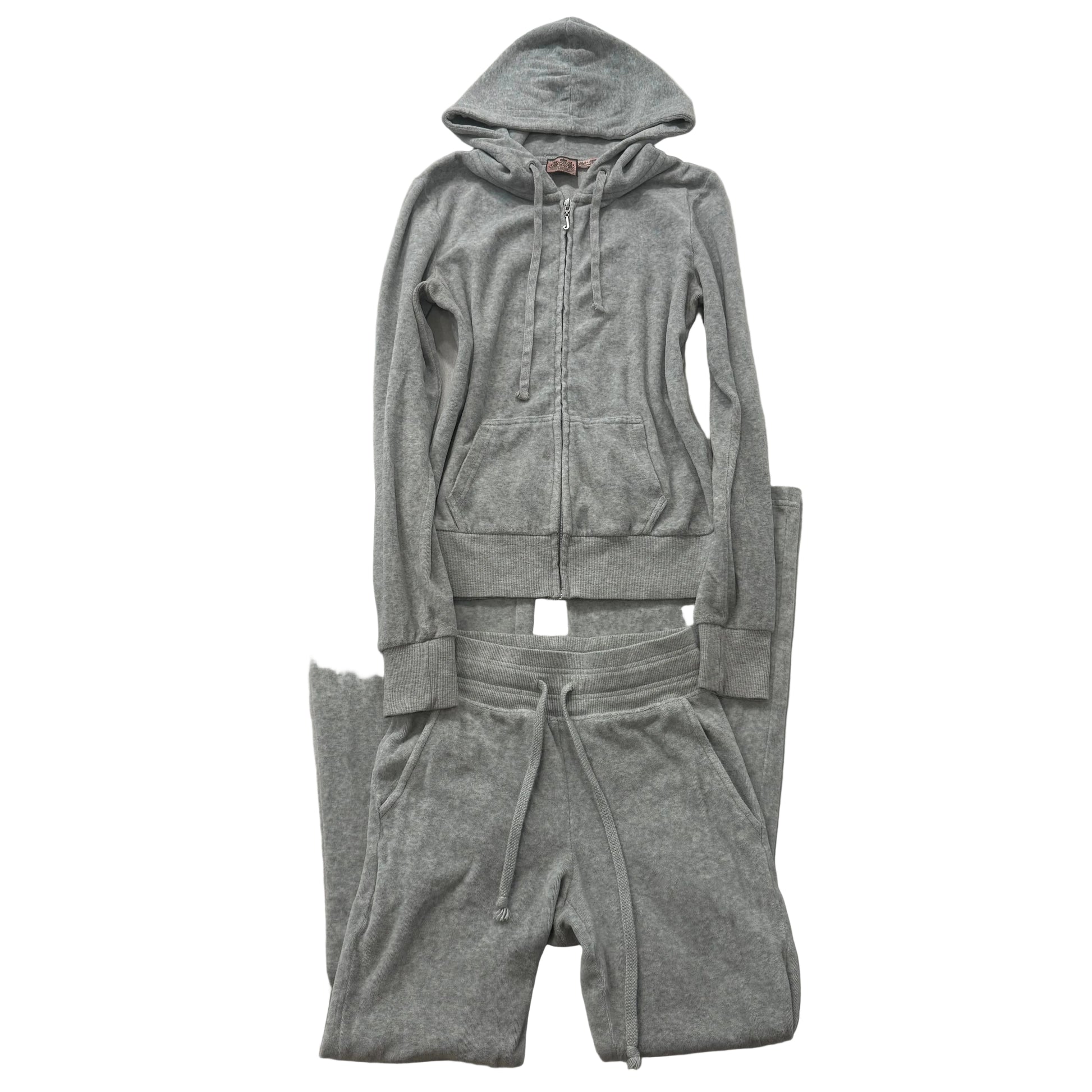 Juicy Couture Gray Velour Tracksuit Set Zip Up Hoodie & Flared Pants Y2K Size S