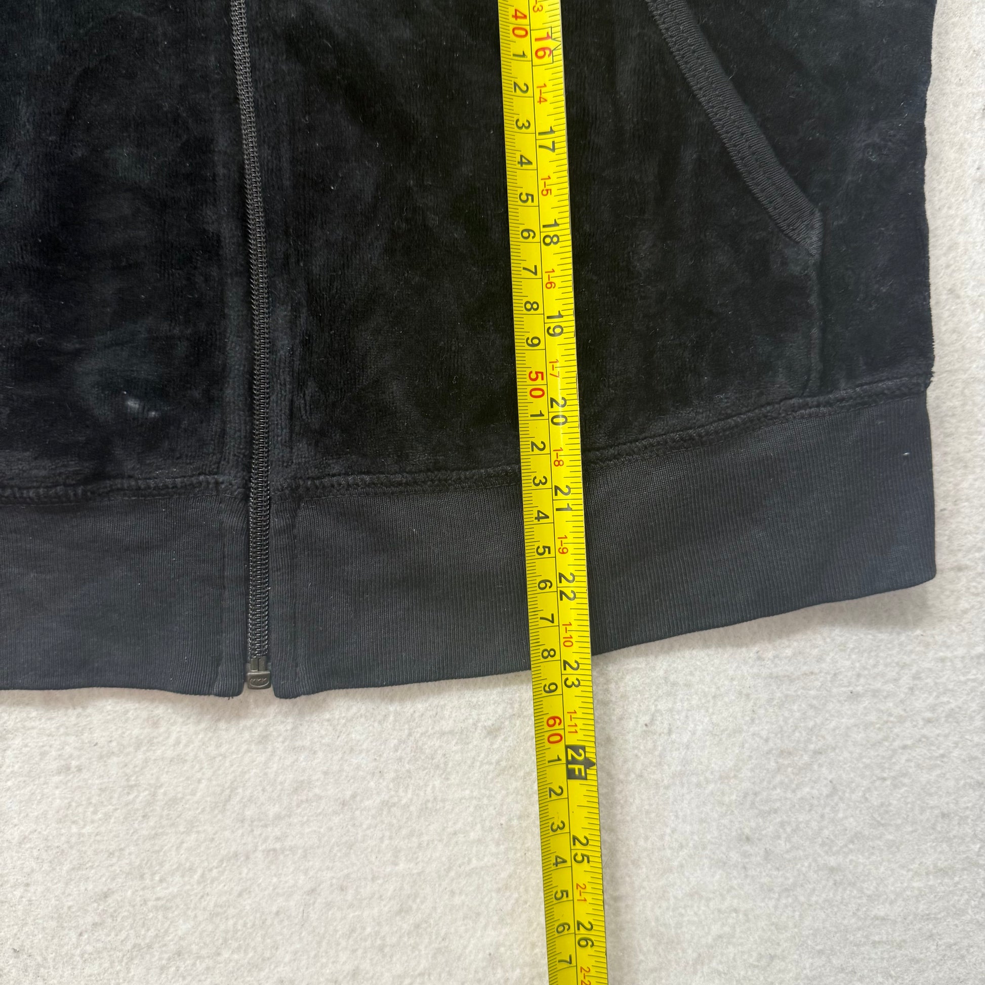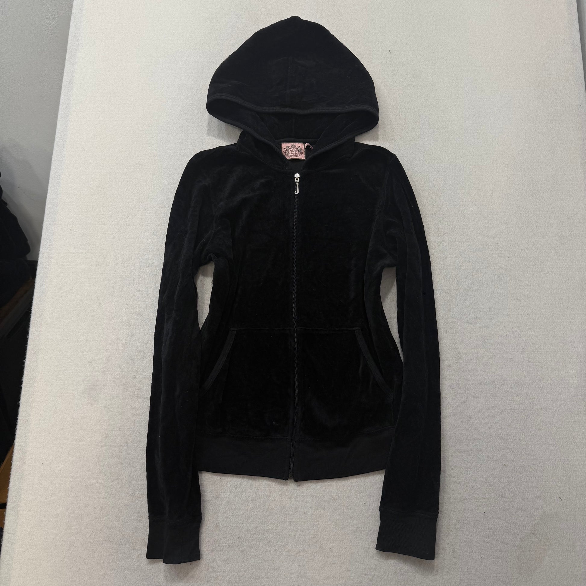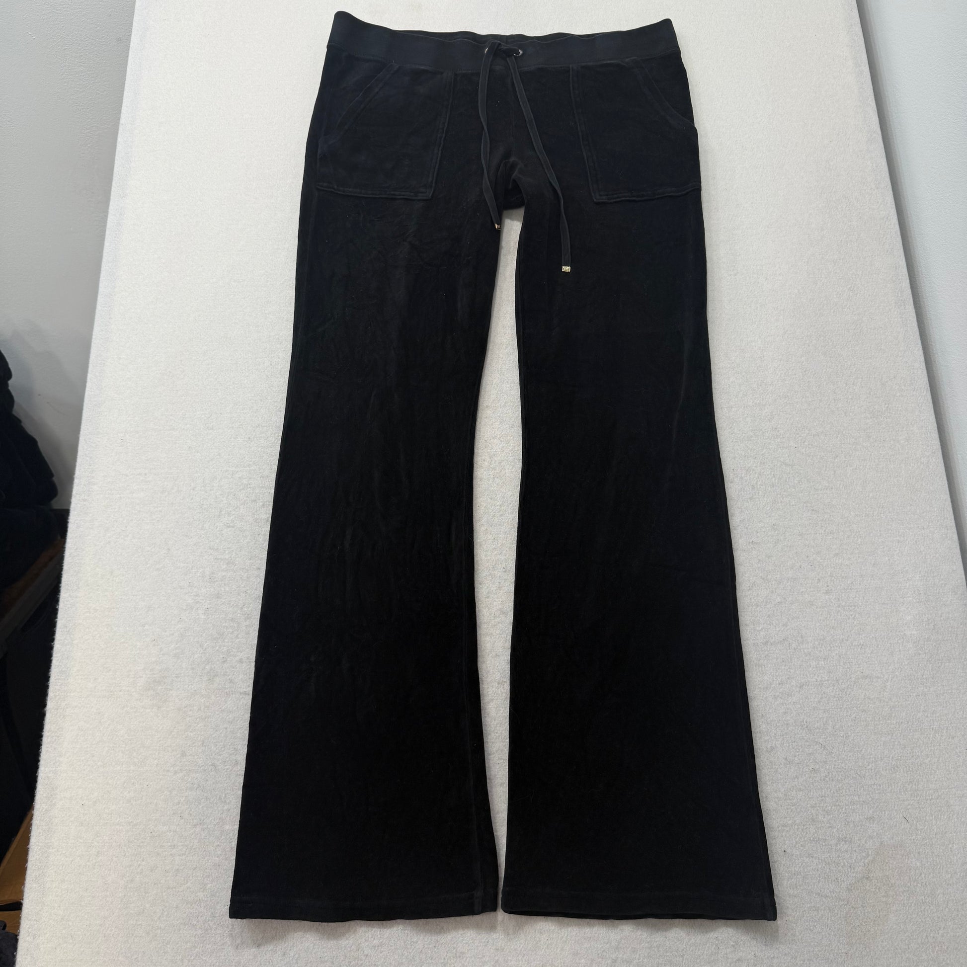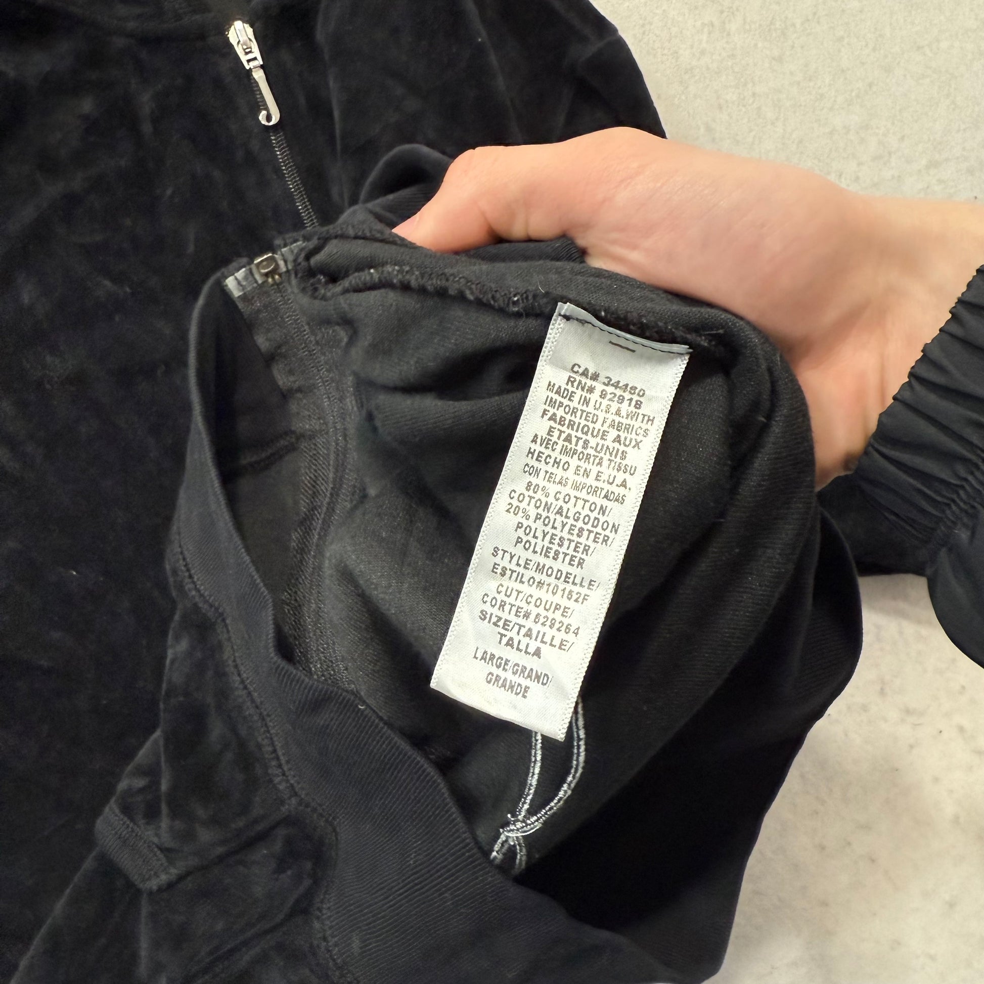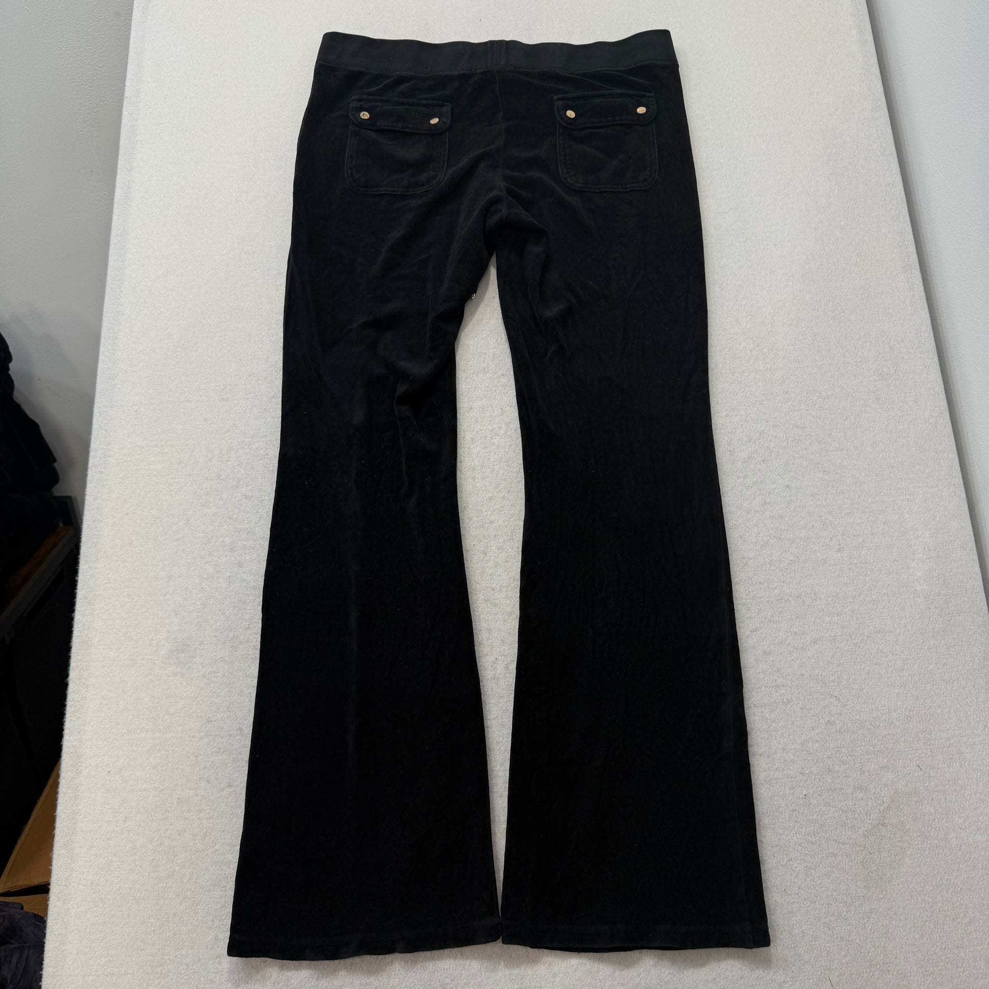 Juicy Couture Black Velour Tracksuit Set Zip Up Hoodie & Flared Pant Logo Size L