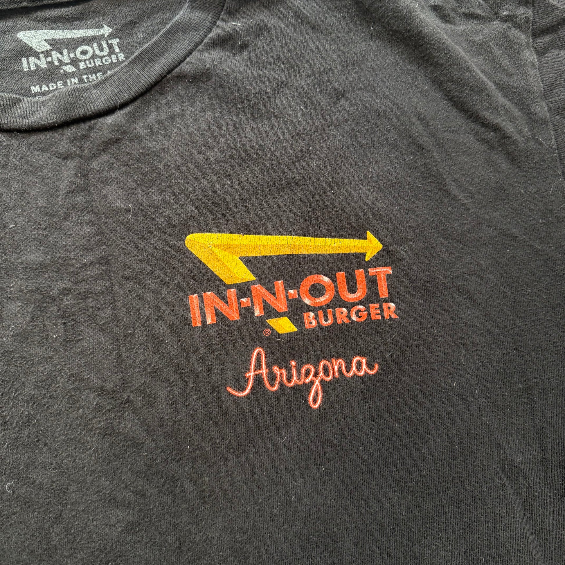 In-N-Out Burger Arizona Men's Black 100% Cotton T-Shirt Features Bold California-Inspired Graphic Print For Nostalgic Foodie Appeal. Designed With A Classic Crewneck And Comfortable Short Sleeve Silhouette For Everyday Casual Styling. Condition: Pre-Owned Excellent, Clean And Ready To Wear, Size L.
