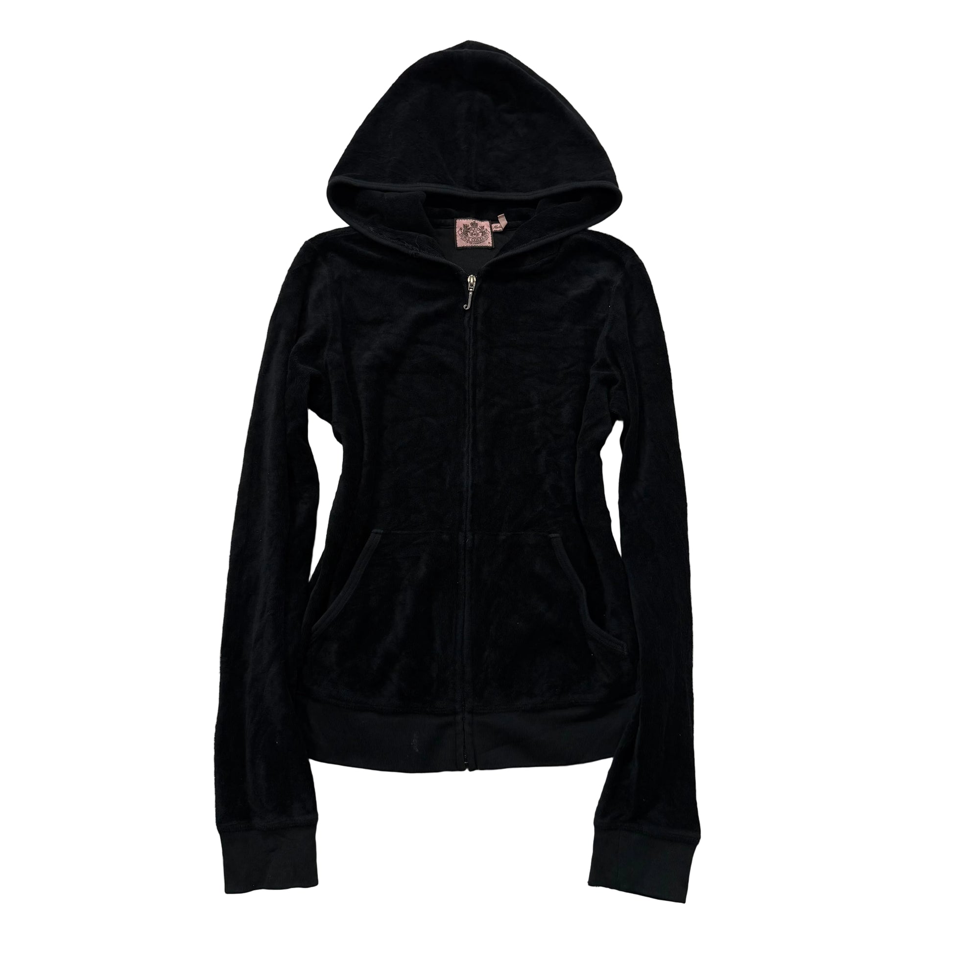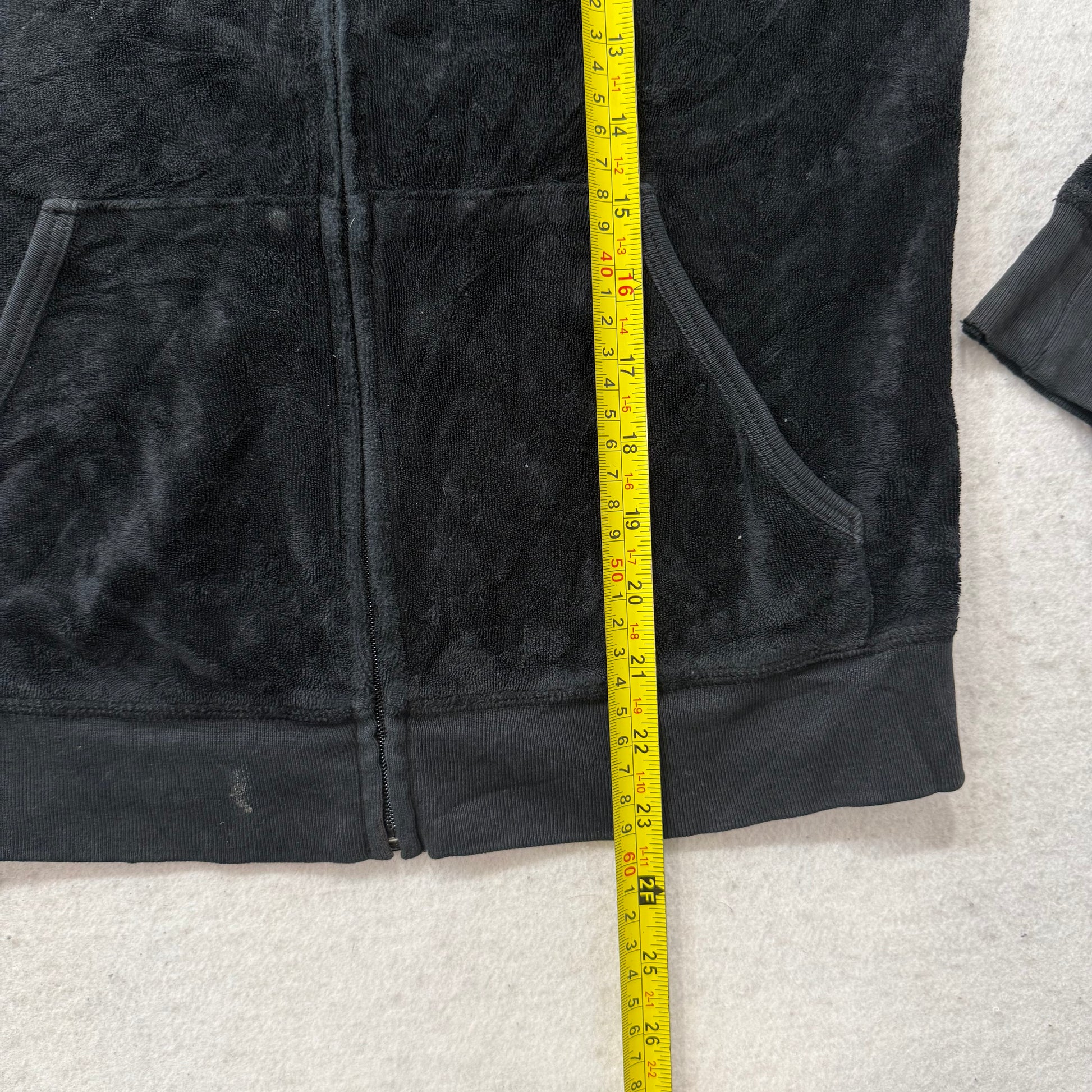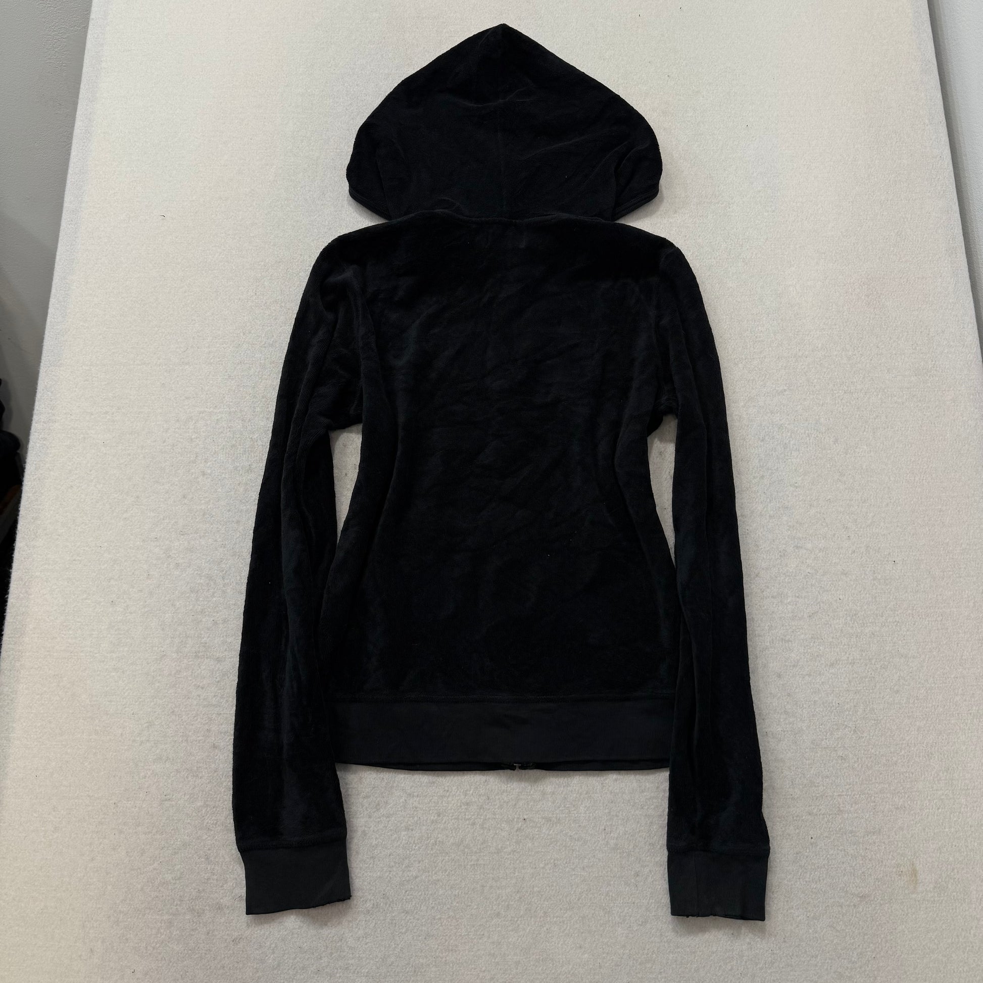 Juicy Couture Womens Black Terrycloth Zip Up Hoodie Split Kangaroo Pocket Size M